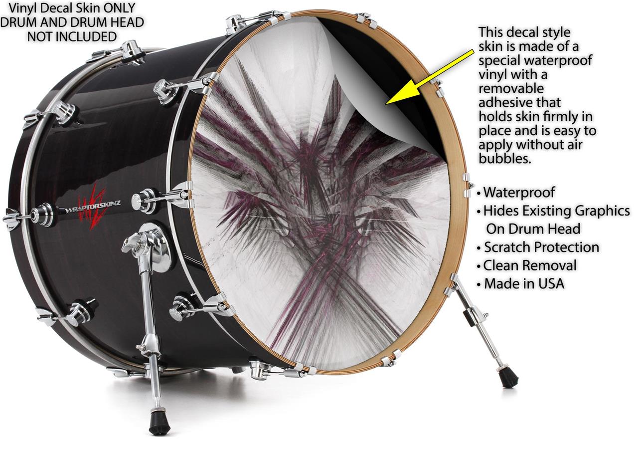 This design also available in other sizes. WraptorSkinz® skin wraps compatible with most kick drum heads. Printed using superb photo quality designs and vibrant colors printed with special fade resistant inks that last even in direct sun for years. WraptorSkinz are a composite three layer commercial grade materials vinyl. The bottom layer is a air release, grey block out removable adhesive that hides existing graphics on the drum head and is easily applied without air bubbles. The middle layer is a flexible vinyl printed with UV protected, fade resistant inks that deliver superb photo quality designs in vibrant colors. Finally, we bond a professional grade laminate over the entire skin adding a glossy protective finish.