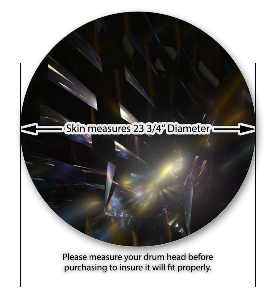 This design also available in other sizes. WraptorSkinz® skin wraps compatible with most kick drum heads. Printed using superb photo quality designs and vibrant colors printed with special fade resistant inks that last even in direct sun for years. WraptorSkinz are a composite three layer commercial grade materials vinyl. The bottom layer is a air release, grey block out removable adhesive that hides existing graphics on the drum head and is easily applied without air bubbles. The middle layer is a flexible vinyl printed with UV protected, fade resistant inks that deliver superb photo quality designs in vibrant colors. Finally, we bond a professional grade laminate over the entire skin adding a glossy protective finish.