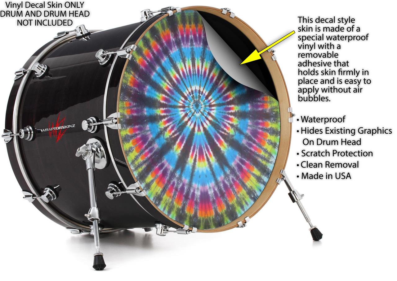 Decal Skin works with most 24" Bass Kick Drum Heads Tie Dye Swirl 101 - DRUM HEAD NOT INCLUDED