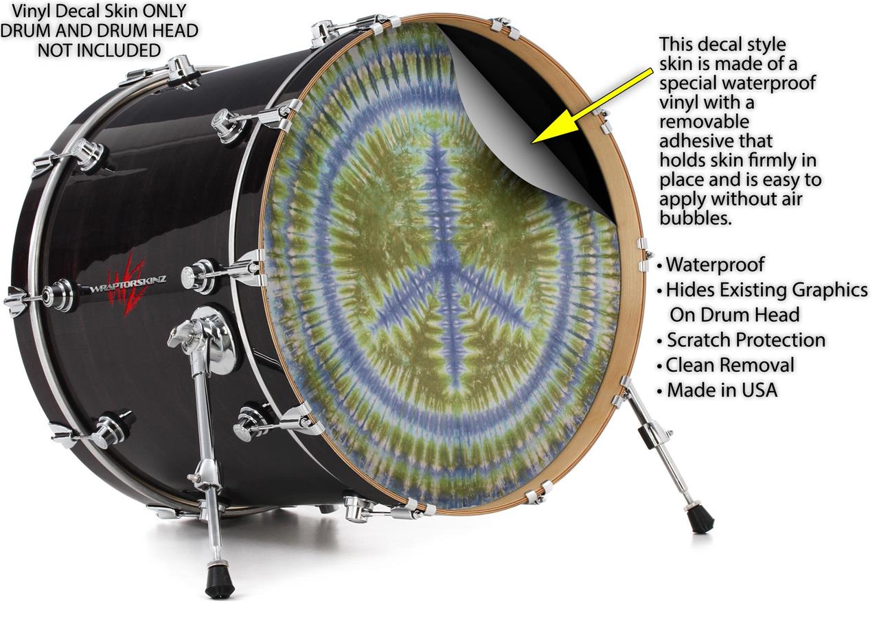 Decal Skin works with most 24" Bass Kick Drum Heads Tie Dye Peace Sign 102 - DRUM HEAD NOT INCLUDED