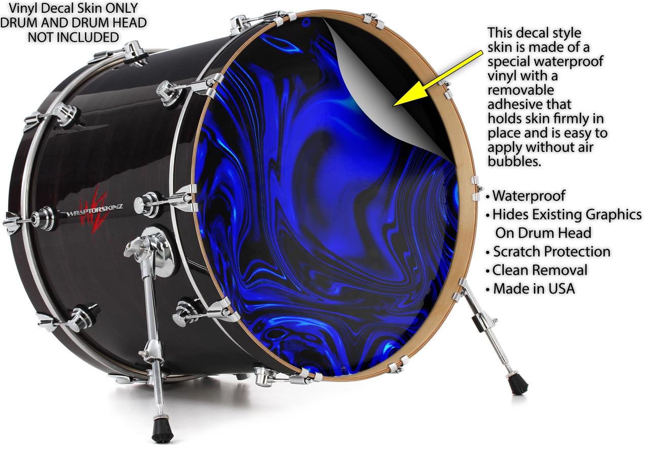 Decal Skin works with most 24" Bass Kick Drum Heads Liquid Metal Chrome Royal Blue - DRUM HEAD NOT INCLUDED