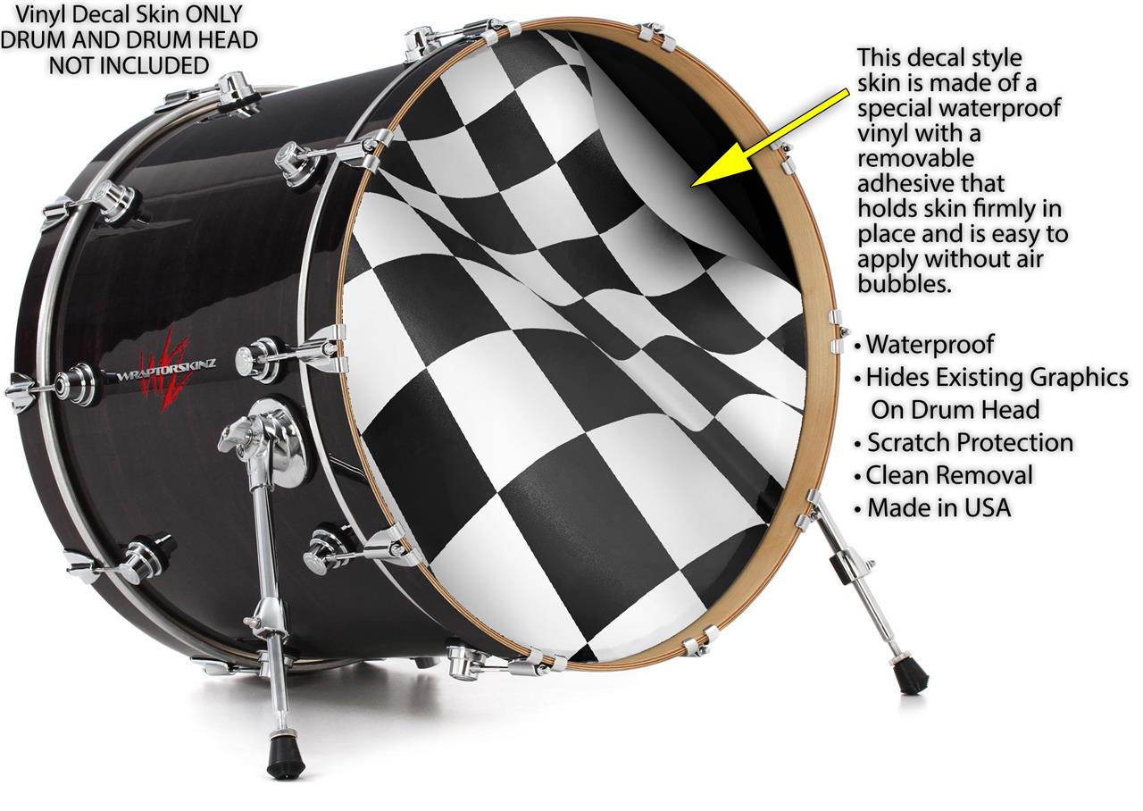 Decal Skin works with most 24" Bass Kick Drum Heads Checkered Flag - DRUM HEAD NOT INCLUDED