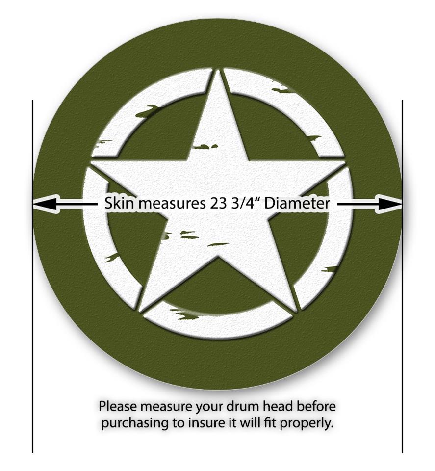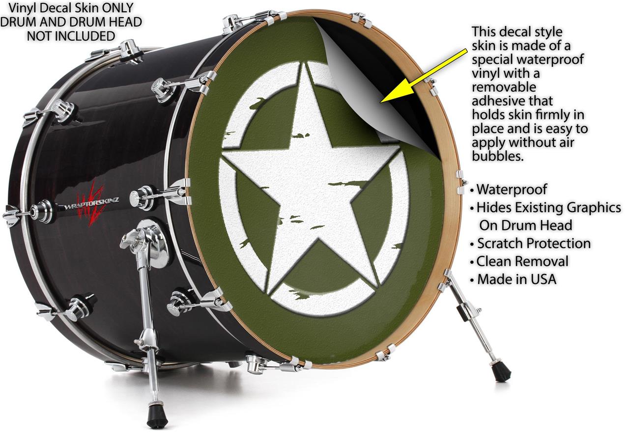 Decal Skin works with most 24" Bass Kick Drum Heads Distressed Army Star - DRUM HEAD NOT INCLUDED
