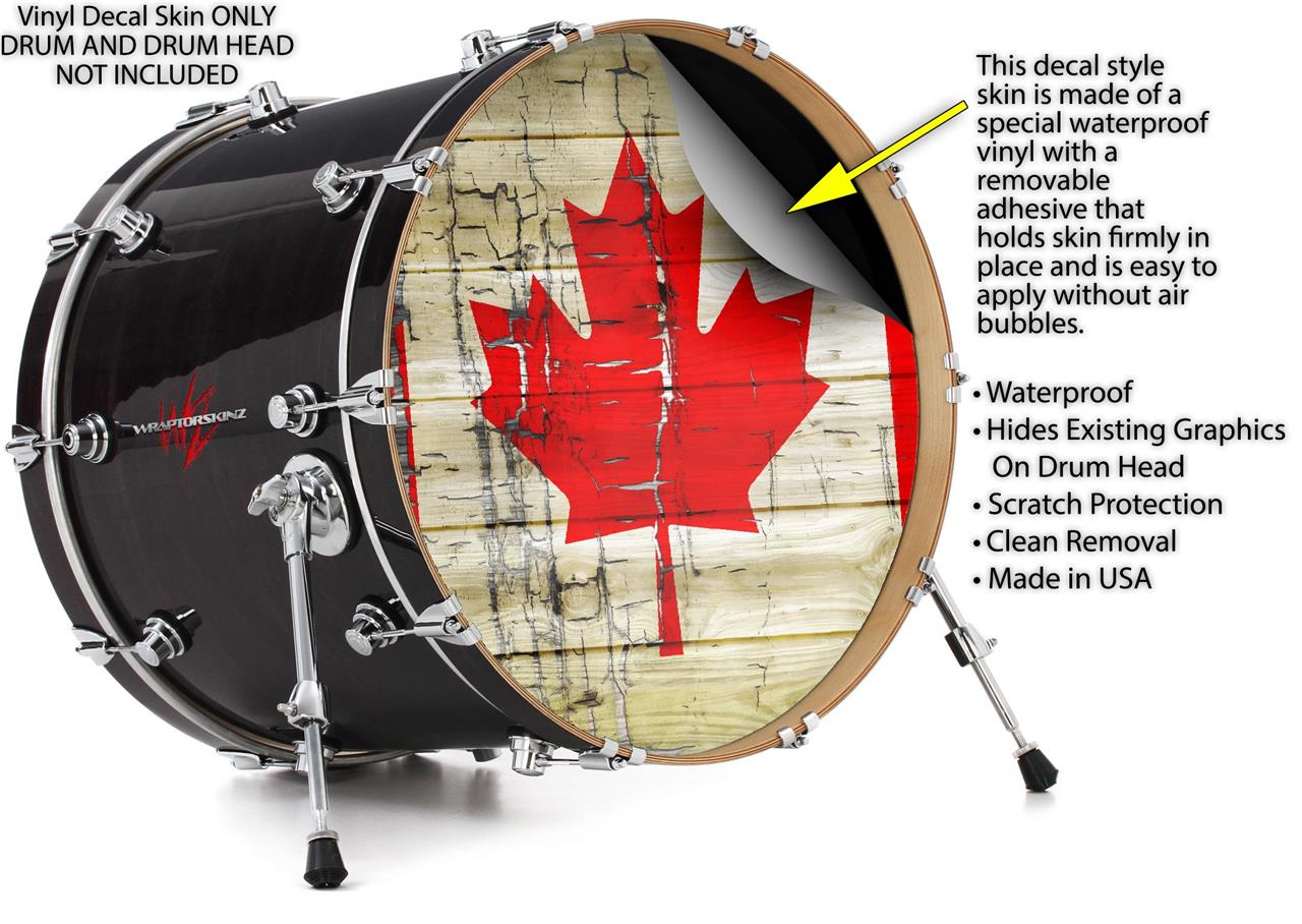 Decal Skin works with most 24" Bass Kick Drum Heads Painted Faded and Cracked Canadian Canada Flag - DRUM HEAD NOT INCLUDED