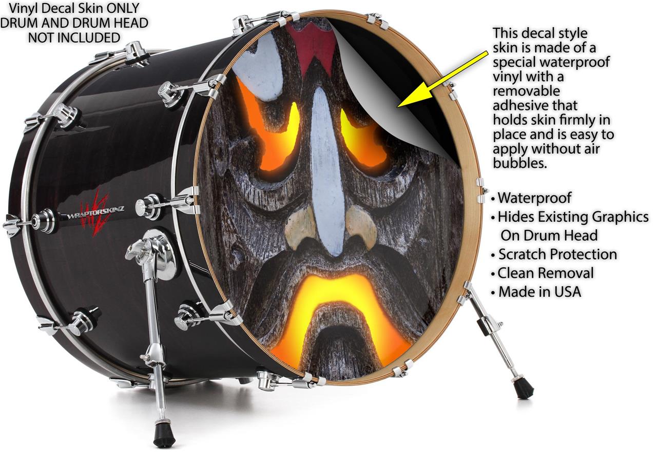 Decal Skin works with most 24" Bass Kick Drum Heads Tiki God 01 - DRUM HEAD NOT INCLUDED