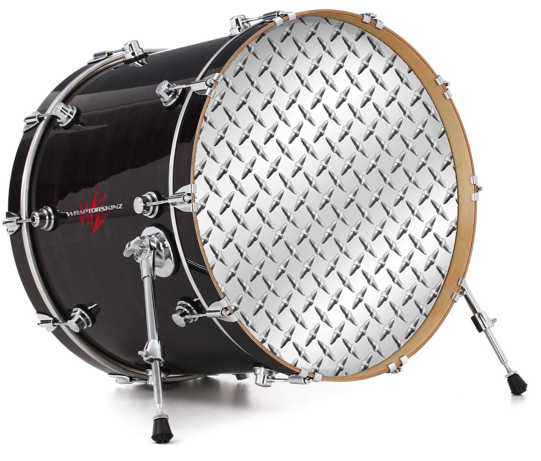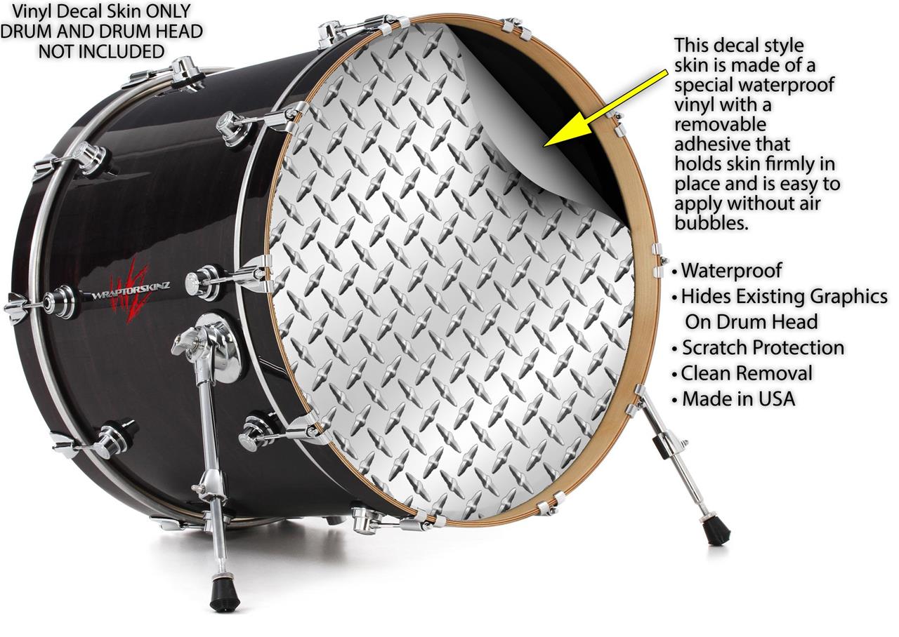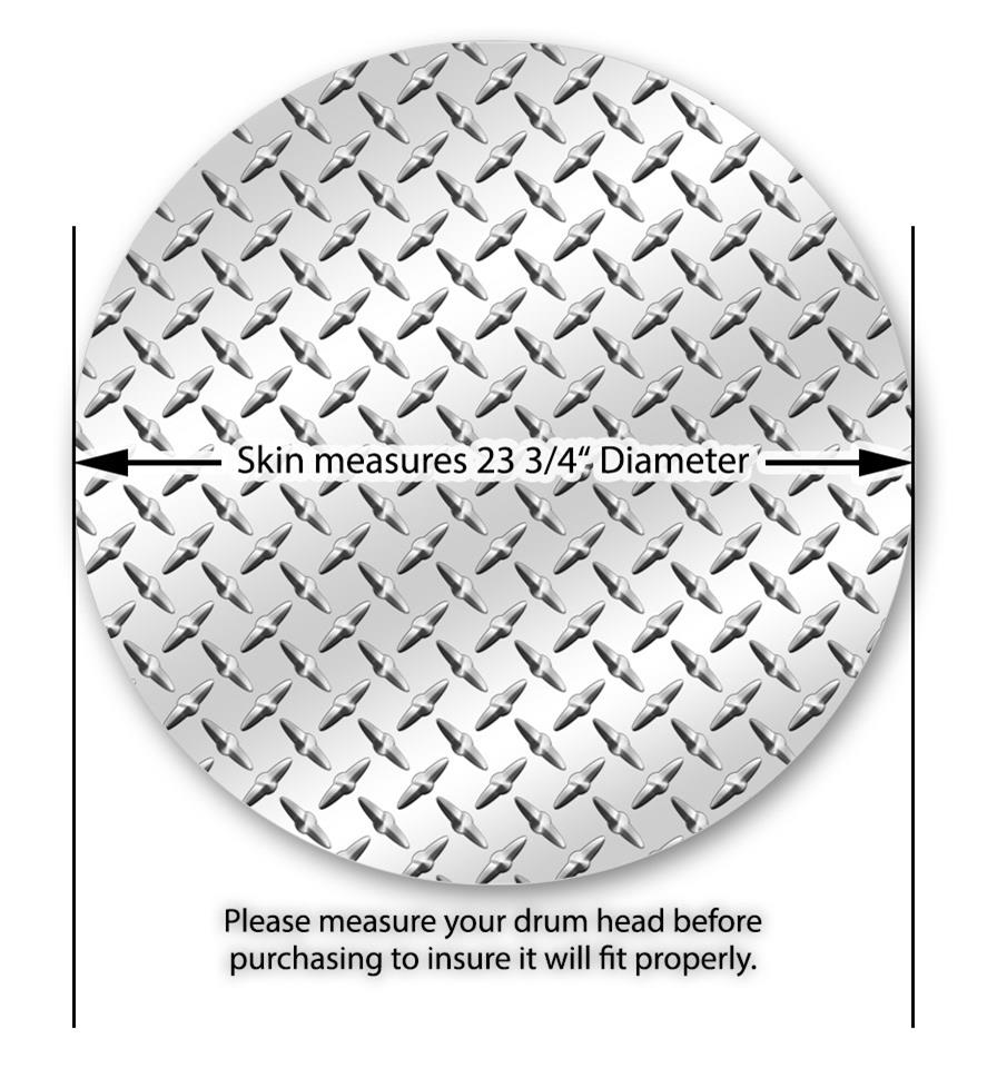 Decal Skin works with most 24" Bass Kick Drum Heads Diamond Plate Metal - DRUM HEAD NOT INCLUDED
