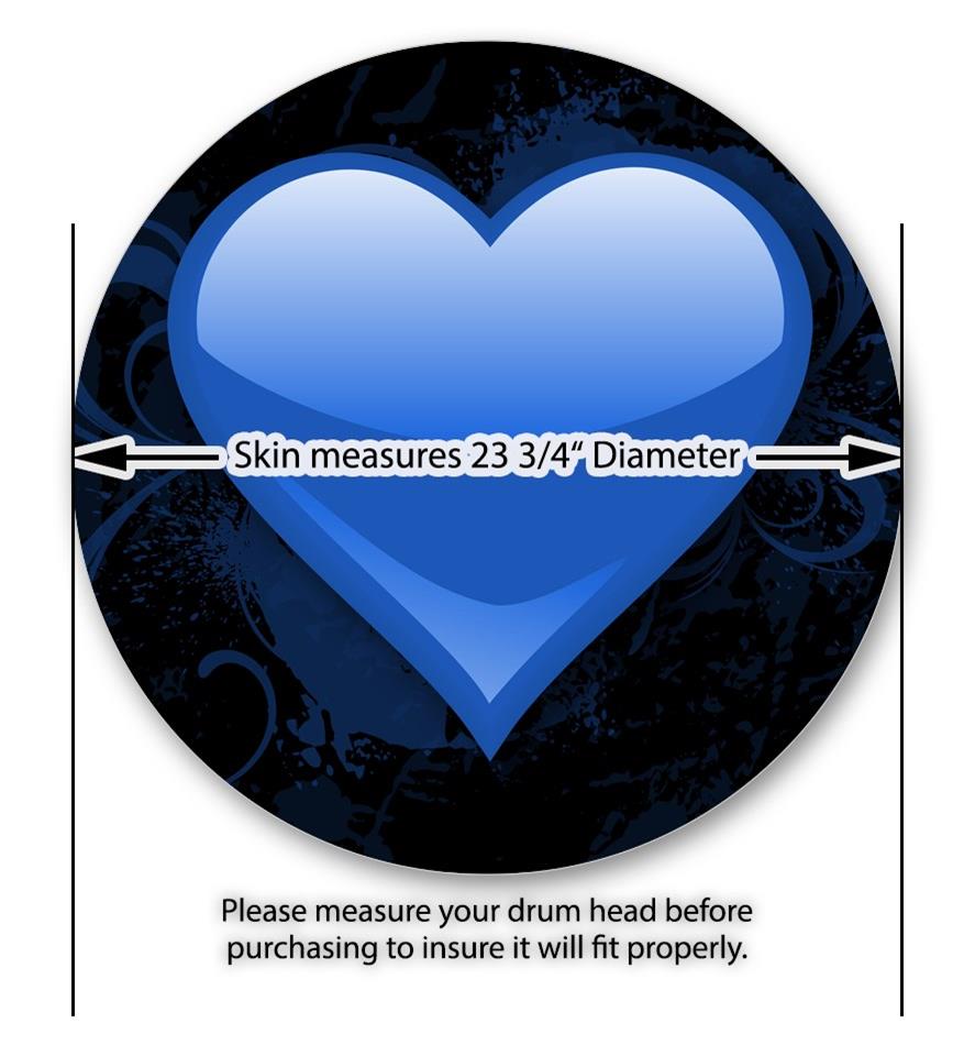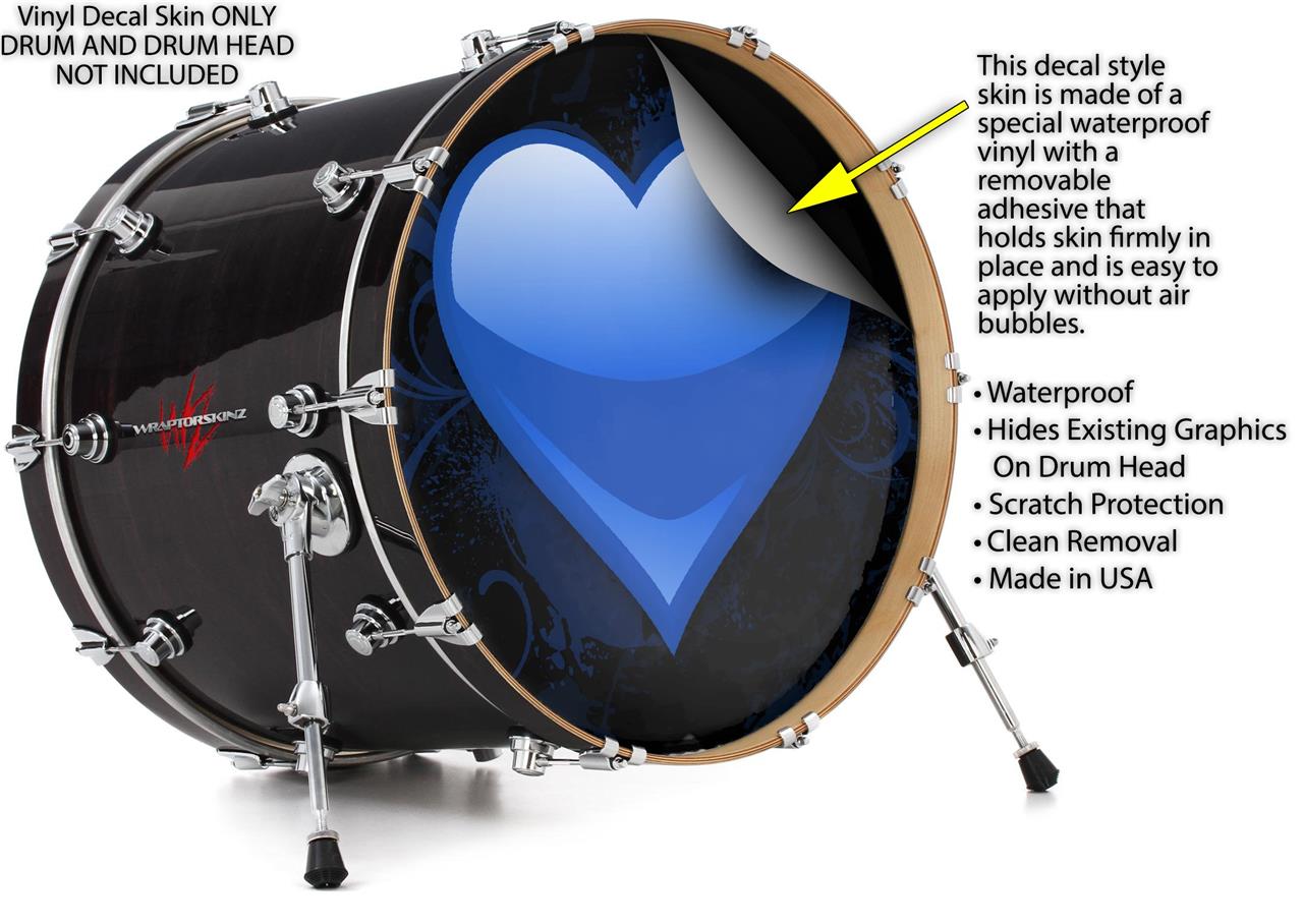 Decal Skin works with most 24" Bass Kick Drum Heads Glass Heart Grunge Blue - DRUM HEAD NOT INCLUDED