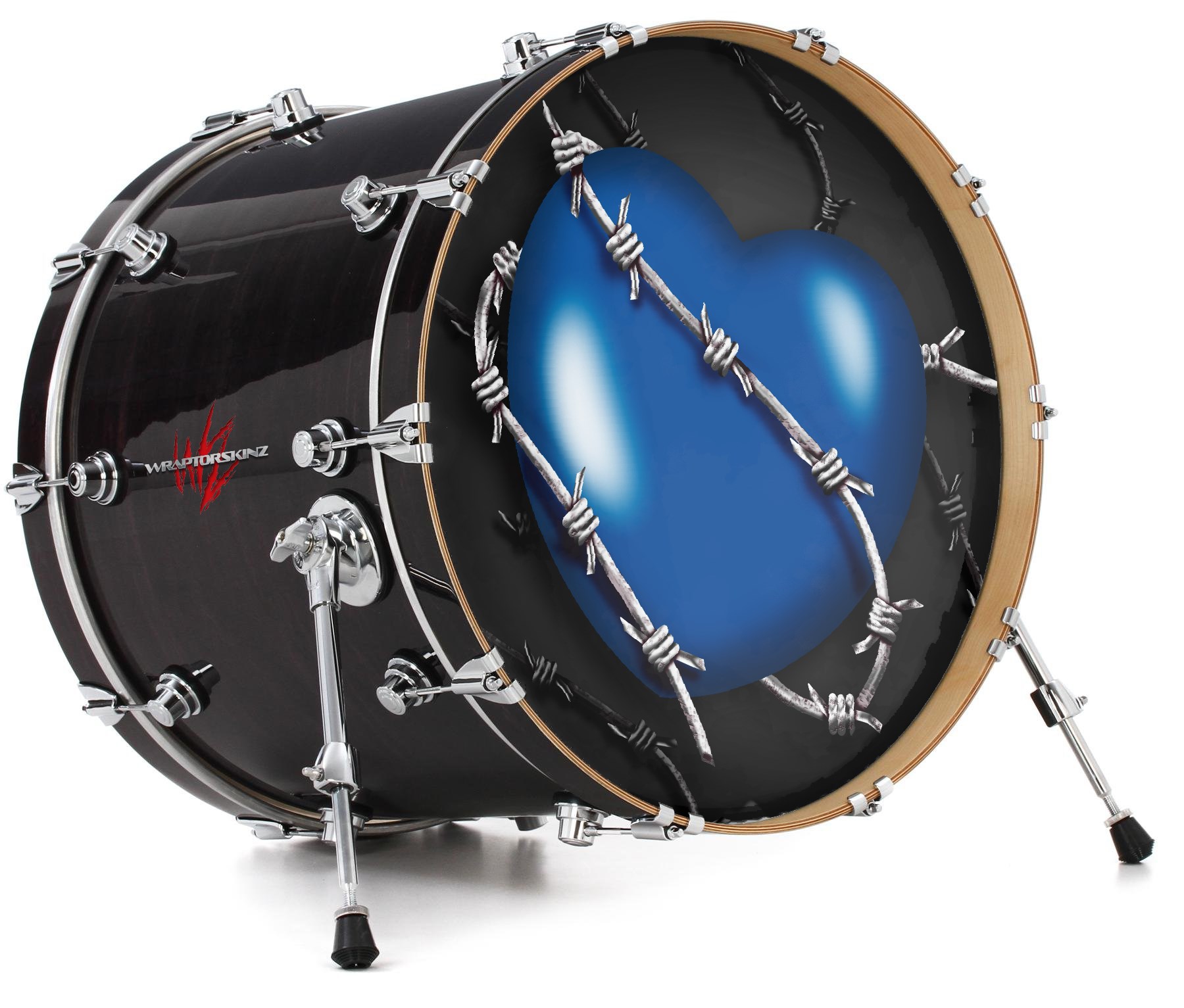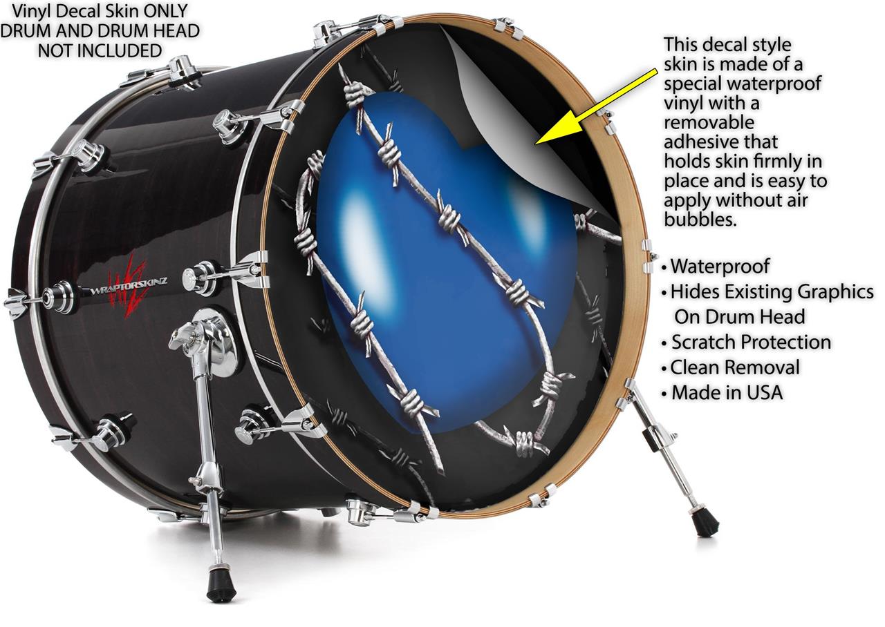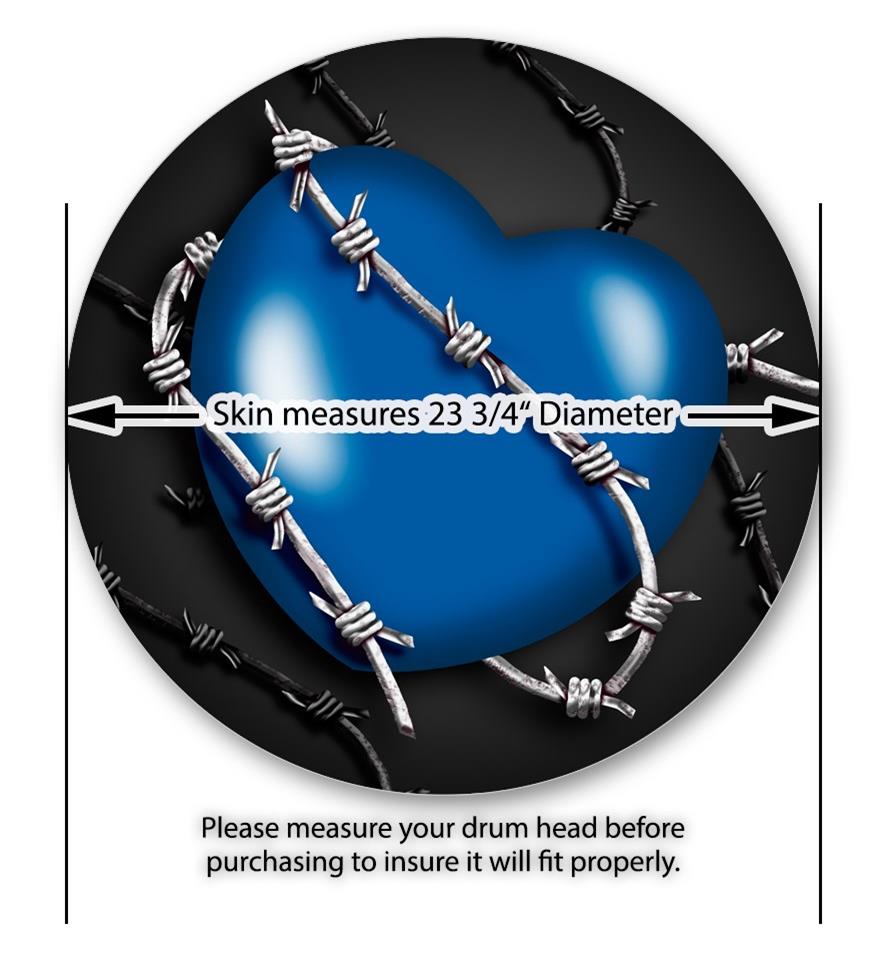 Decal Skin works with most 24" Bass Kick Drum Heads Barbwire Heart Blue - DRUM HEAD NOT INCLUDED