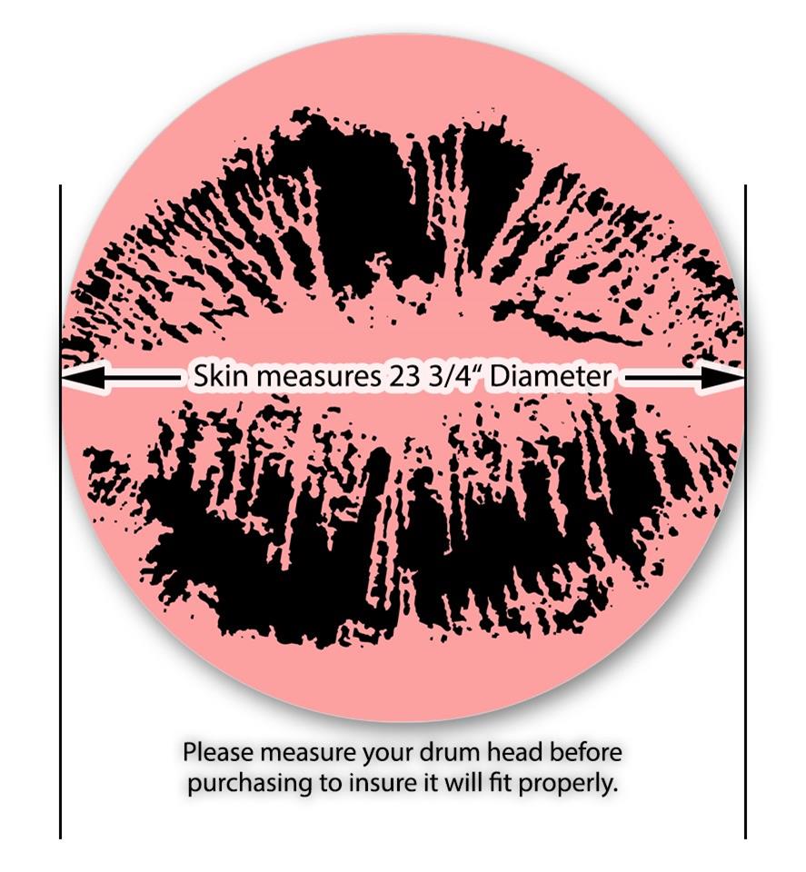 Decal Skin works with most 24" Bass Kick Drum Heads Big Kiss Black on Pink - DRUM HEAD NOT INCLUDED