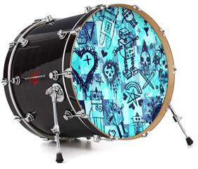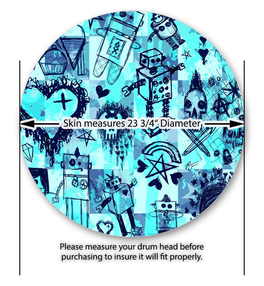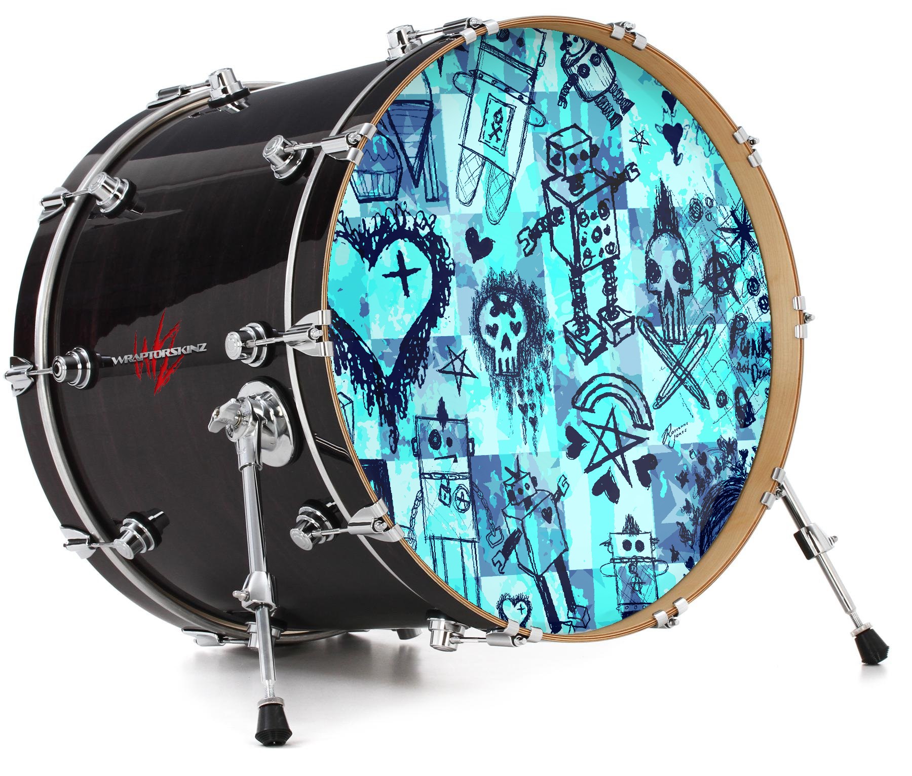 Decal Skin works with most 24" Bass Kick Drum Heads Scene Kid Sketches Blue - DRUM HEAD NOT INCLUDED
