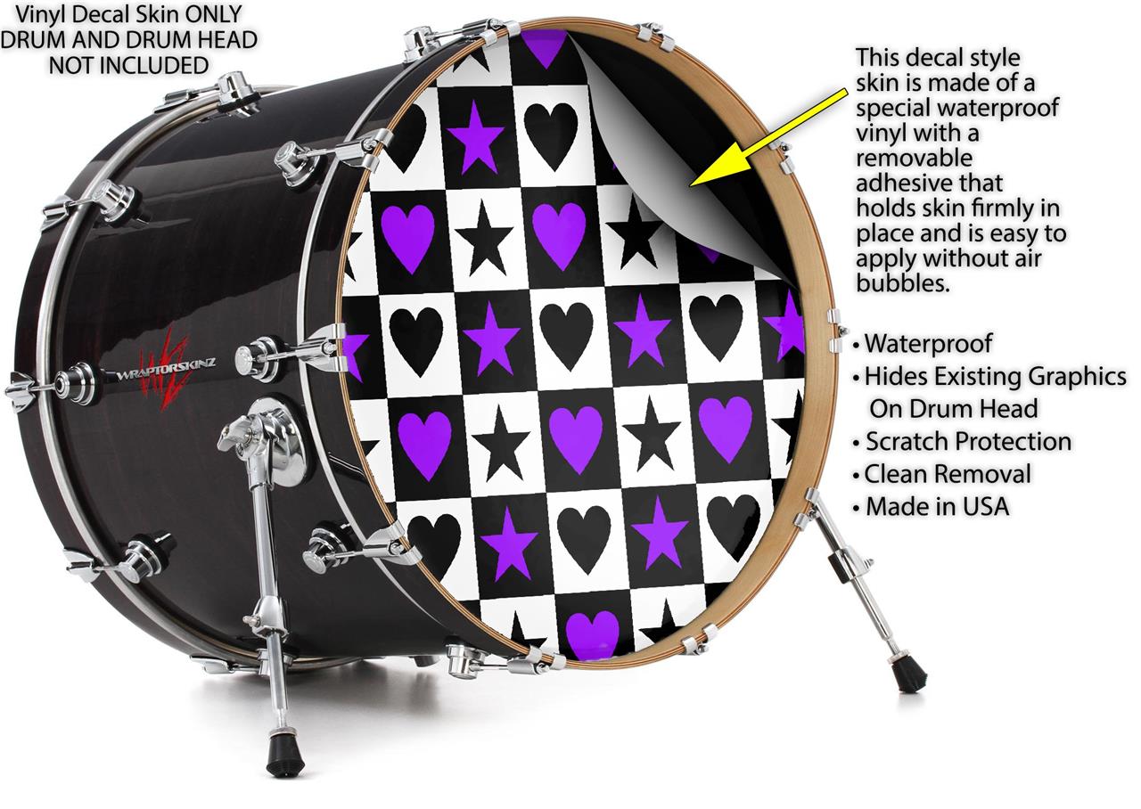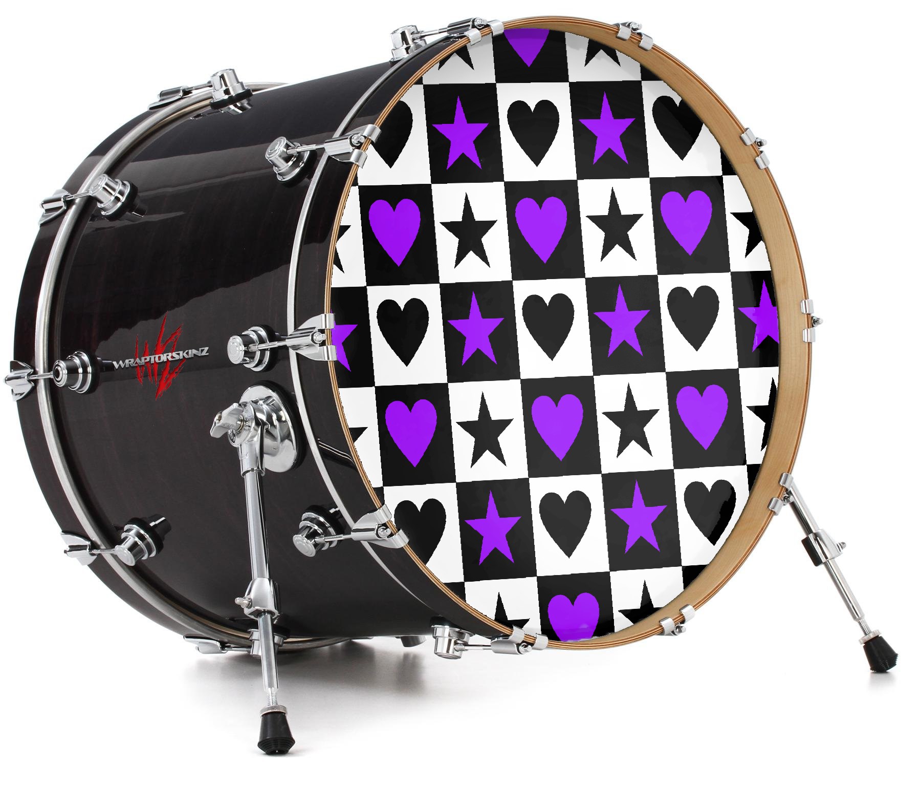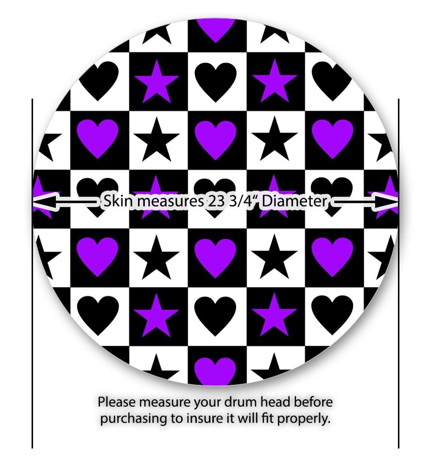 Decal Skin works with most 24" Bass Kick Drum Heads Purple Hearts And Stars - DRUM HEAD NOT INCLUDED