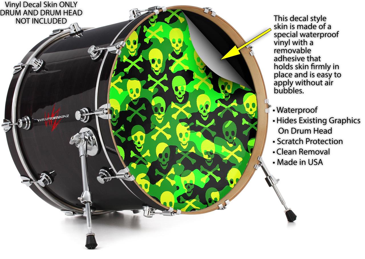Decal Skin works with most 24" Bass Kick Drum Heads Skull Camouflage - DRUM HEAD NOT INCLUDED