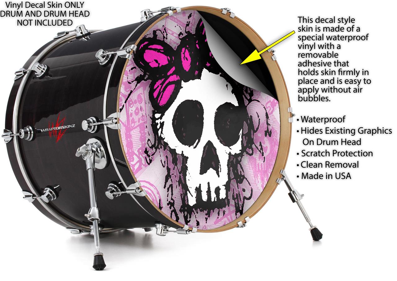 This design also available in other sizes. WraptorSkinz® skin wraps compatible with most kick drum heads. Printed using superb photo quality designs and vibrant colors printed with special fade resistant inks that last even in direct sun for years. WraptorSkinz are a composite three layer commercial grade materials vinyl. The bottom layer is a air release, grey block out removable adhesive that hides existing graphics on the drum head and is easily applied without air bubbles. The middle layer is a flexible vinyl printed with UV protected, fade resistant inks that deliver superb photo quality designs in vibrant colors. Finally, we bond a professional grade laminate over the entire skin adding a glossy protective finish.