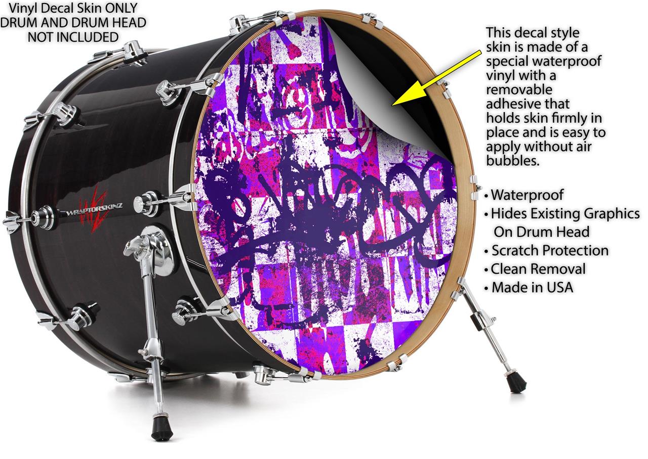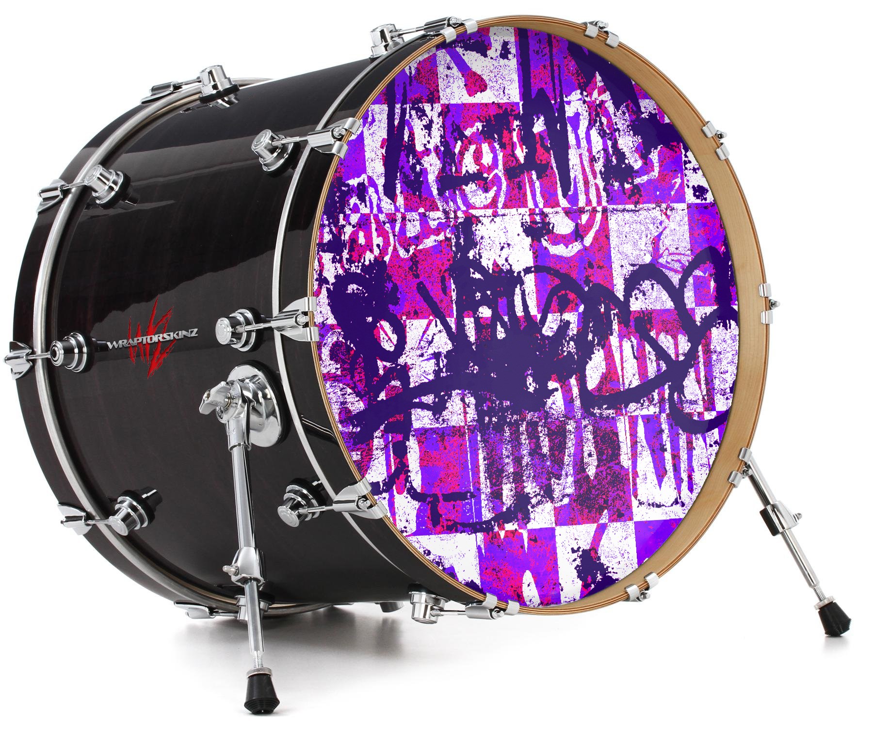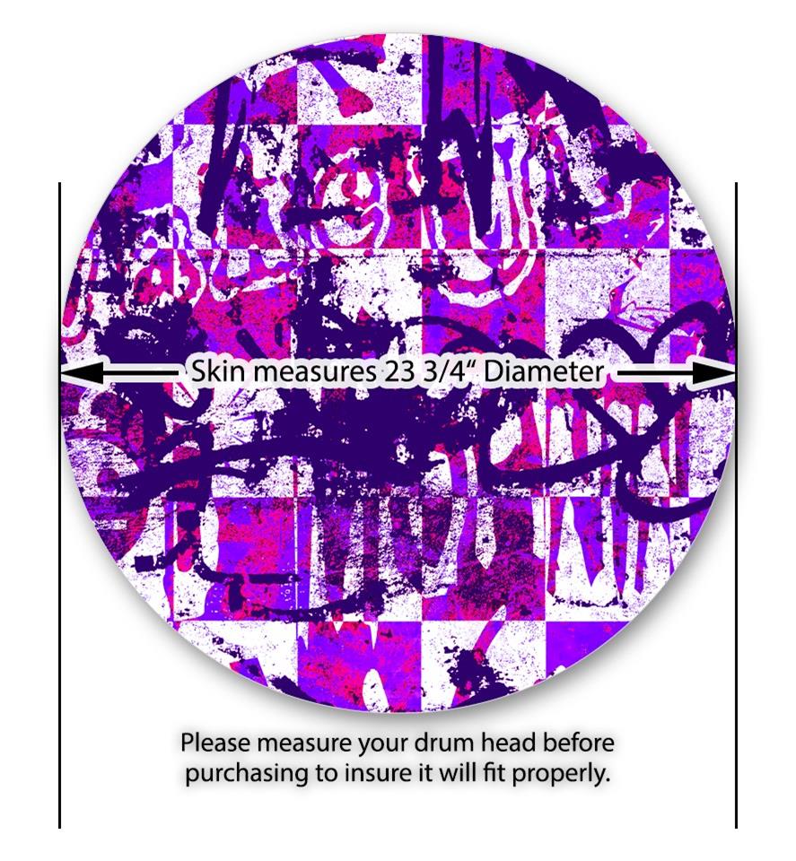 Decal Skin works with most 24" Bass Kick Drum Heads Purple Checker Graffiti - DRUM HEAD NOT INCLUDED