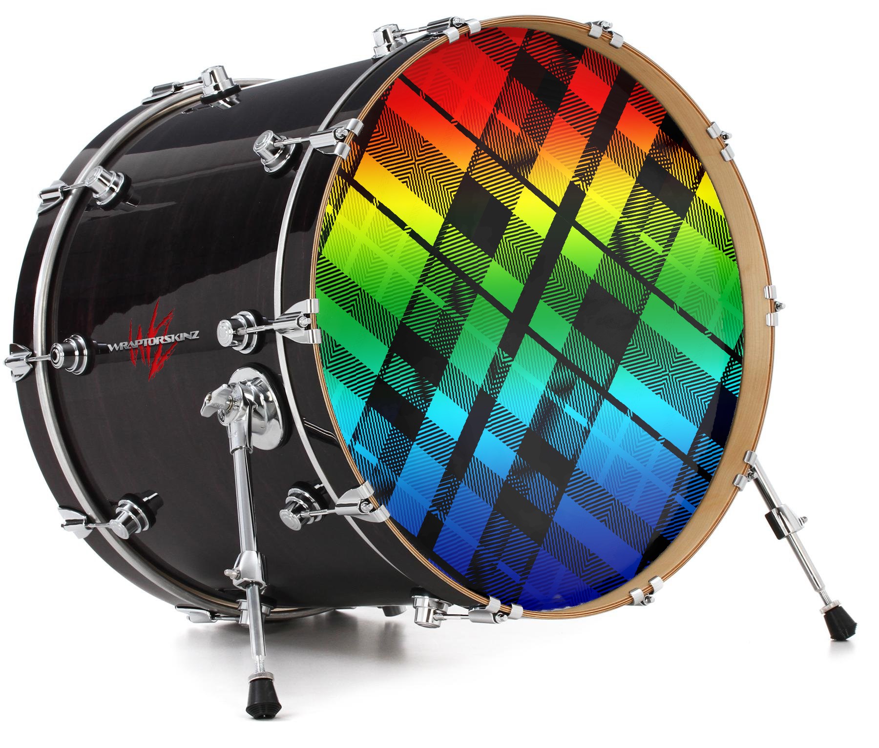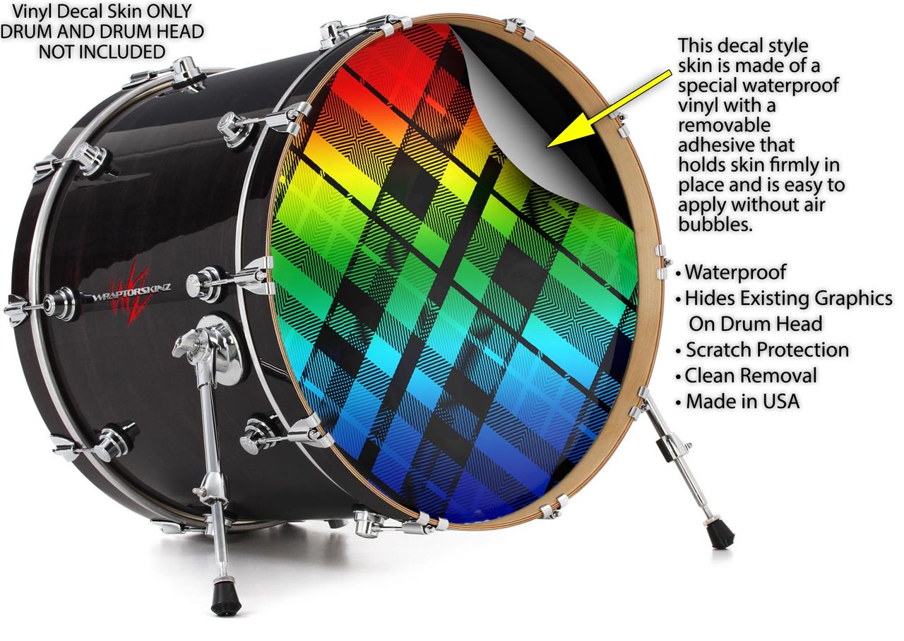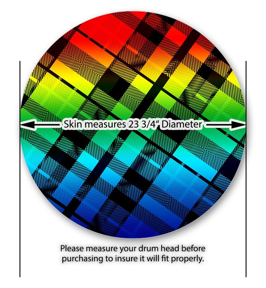 Decal Skin works with most 24" Bass Kick Drum Heads Rainbow Plaid - DRUM HEAD NOT INCLUDED