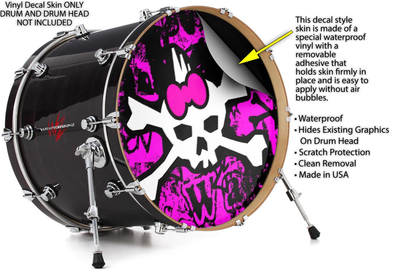 Decal Skin works with most 24" Bass Kick Drum Heads Punk Skull Princess - DRUM HEAD NOT INCLUDED
