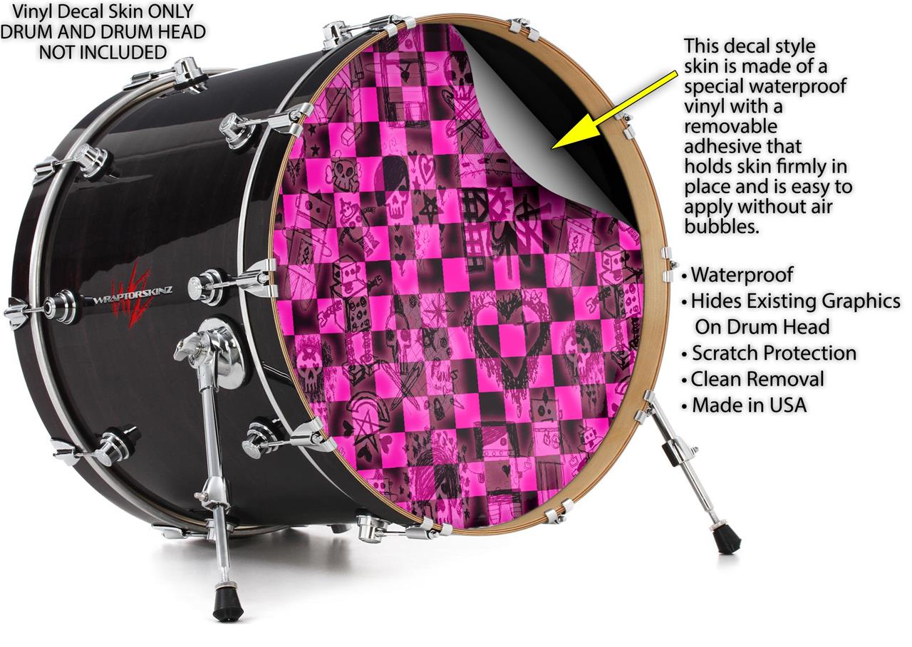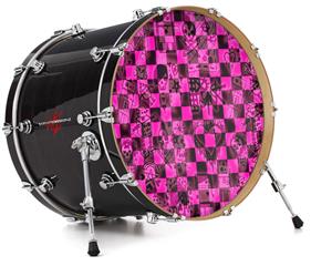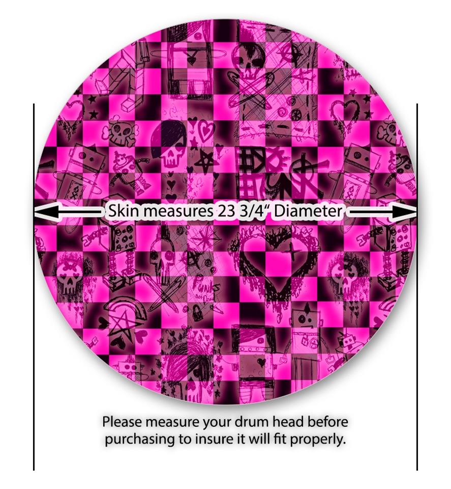 Decal Skin works with most 24" Bass Kick Drum Heads Pink Checkerboard Sketches - DRUM HEAD NOT INCLUDED
