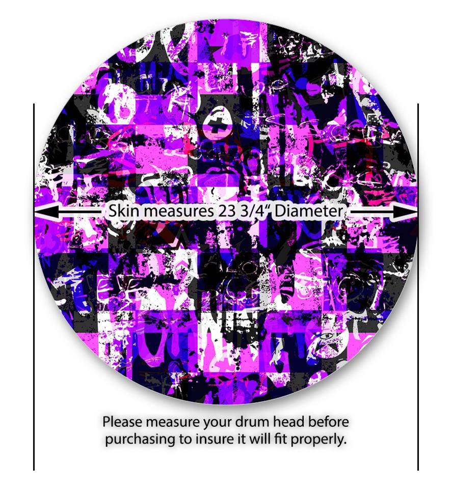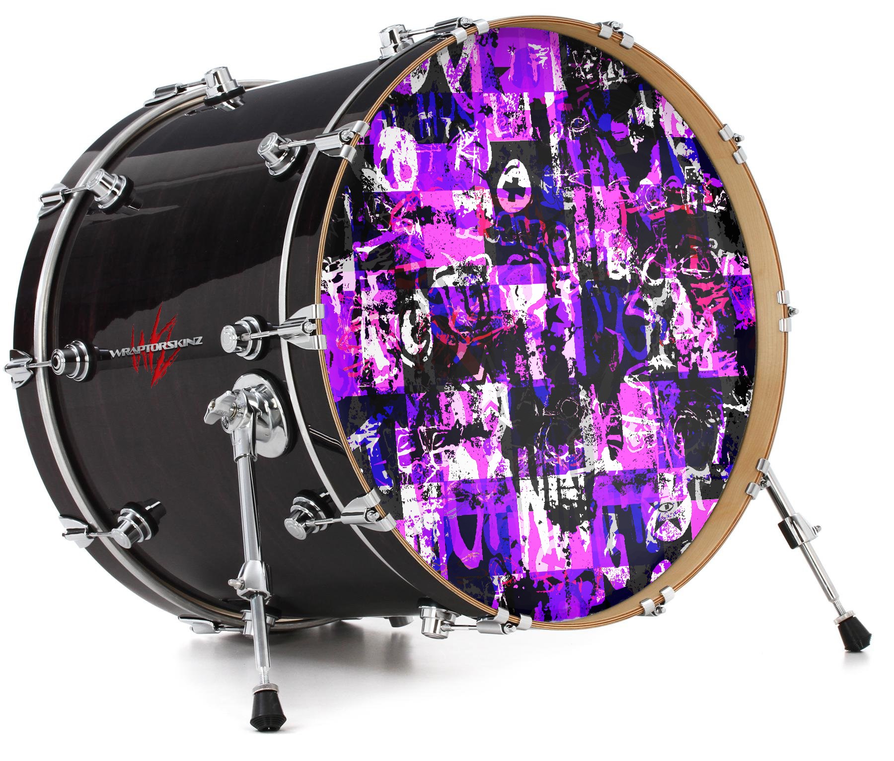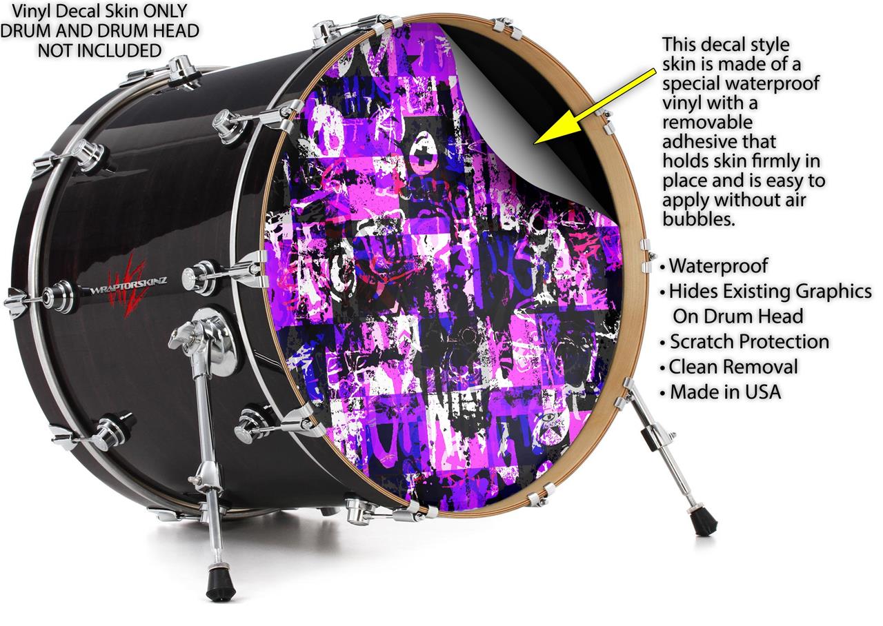 Decal Skin works with most 24" Bass Kick Drum Heads Purple Graffiti - DRUM HEAD NOT INCLUDED