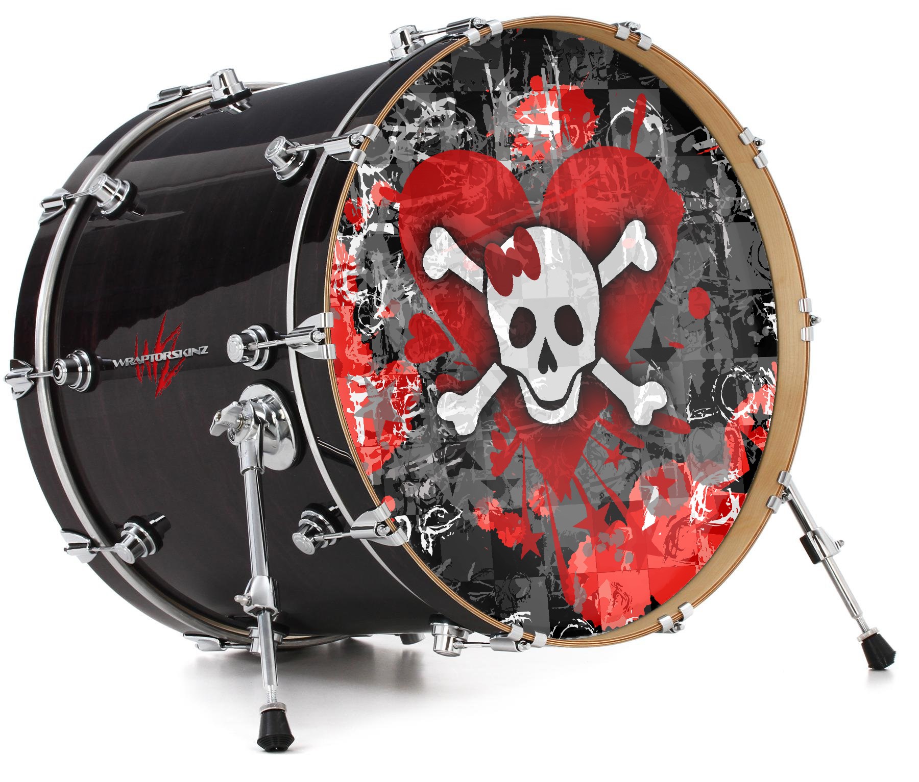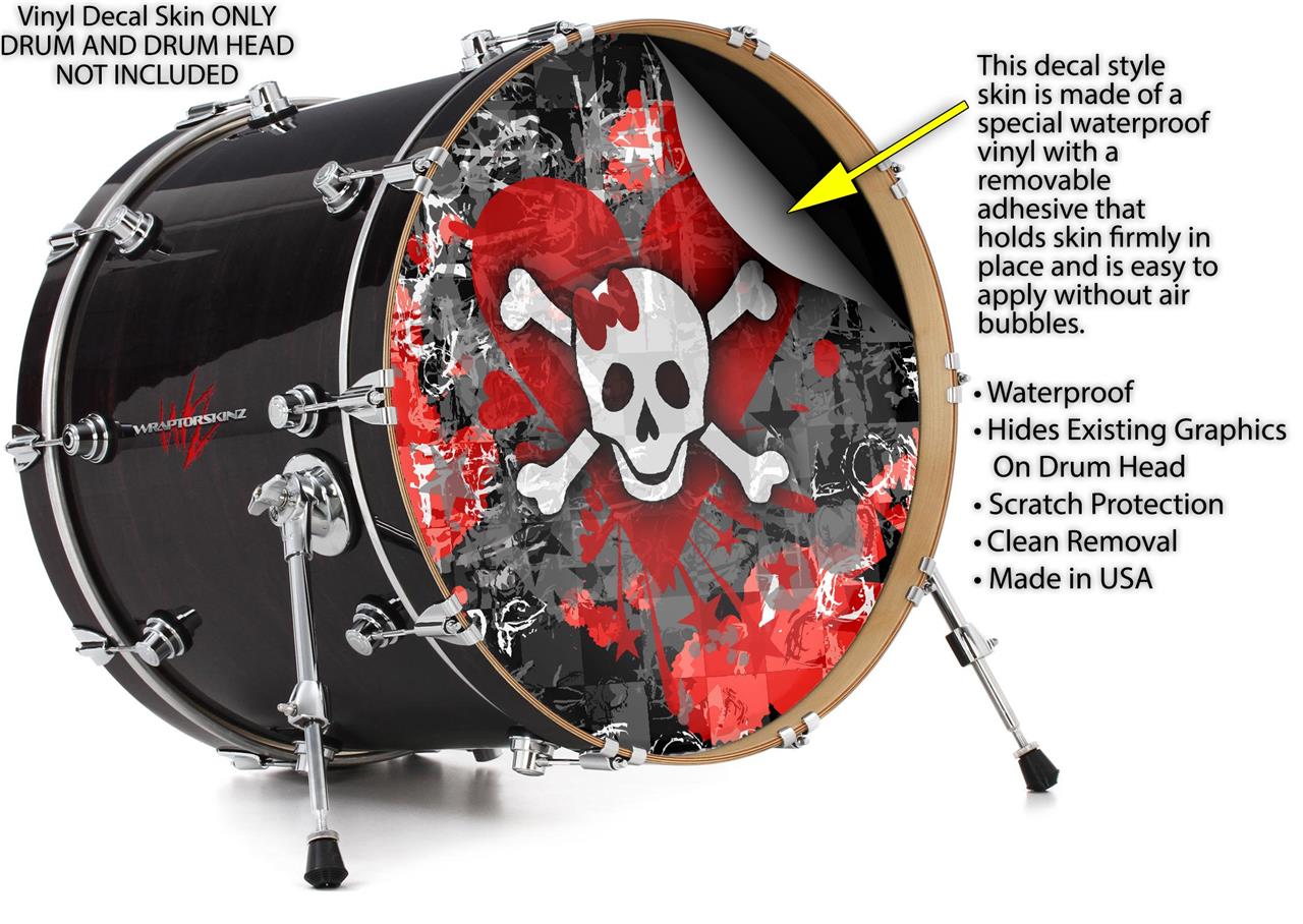 Decal Skin works with most 24" Bass Kick Drum Heads Emo Skull Bones - DRUM HEAD NOT INCLUDED