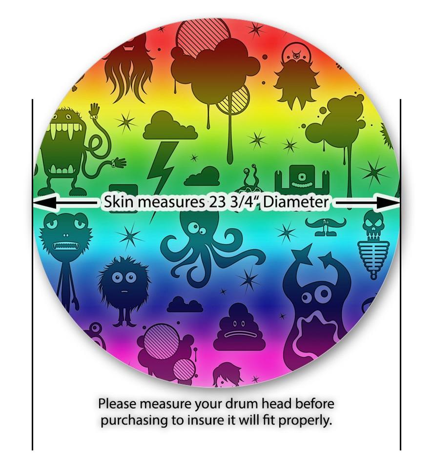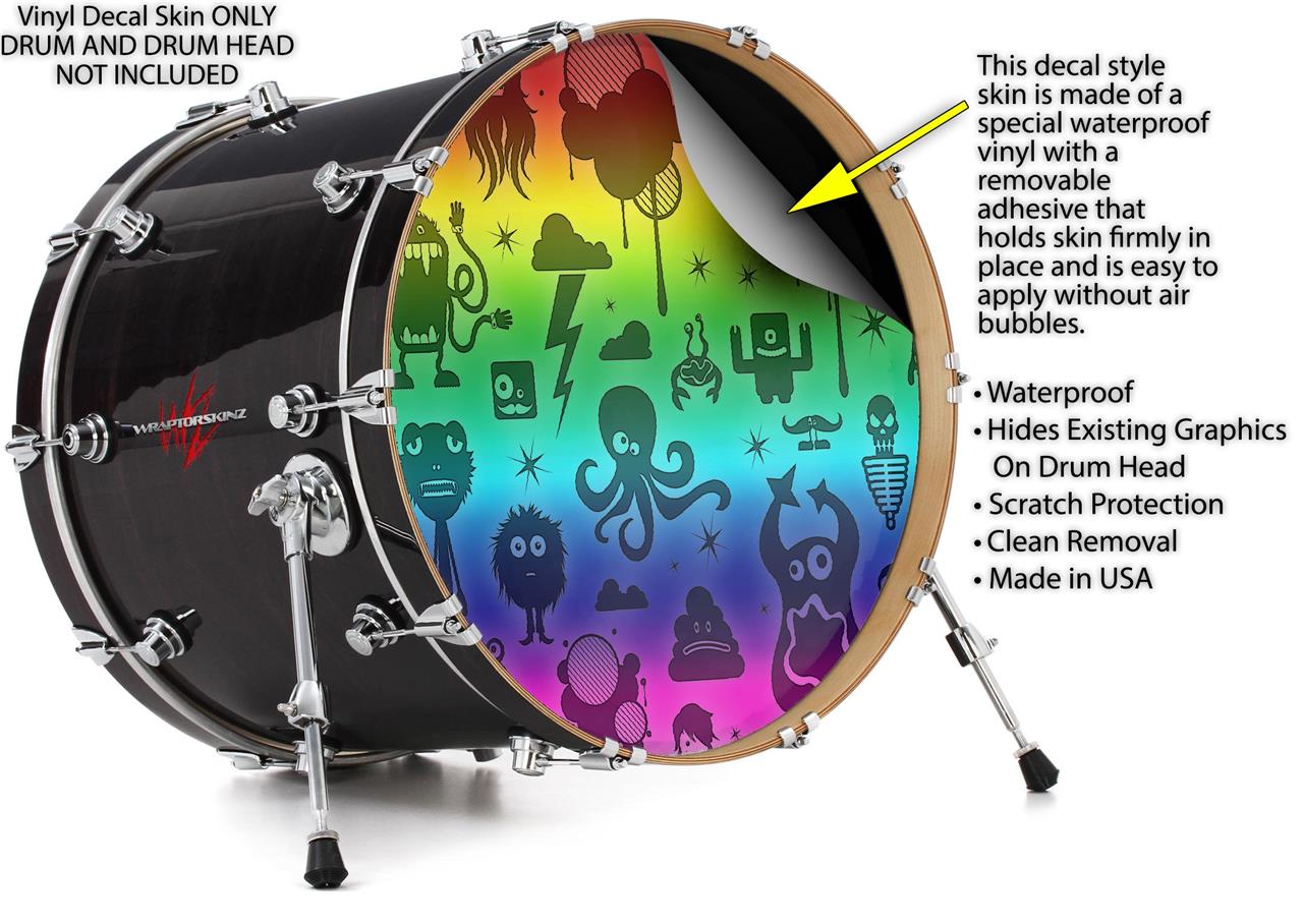Decal Skin works with most 24" Bass Kick Drum Heads Cute Rainbow Monsters - DRUM HEAD NOT INCLUDED
