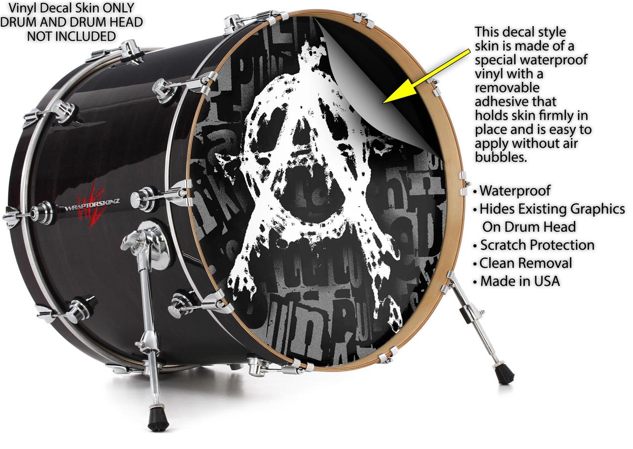 Decal Skin works with most 24" Bass Kick Drum Heads Anarchy - DRUM HEAD NOT INCLUDED