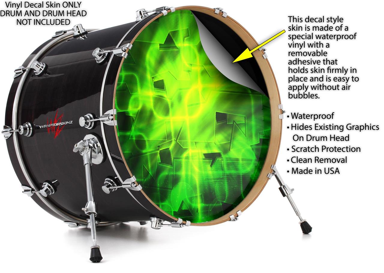Decal Skin works with most 24" Bass Kick Drum Heads Cubic Shards Green - DRUM HEAD NOT INCLUDED