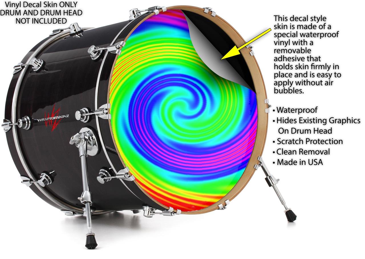 Decal Skin works with most 26" Bass Kick Drum Heads Rainbow Swirl - DRUM HEAD NOT INCLUDED