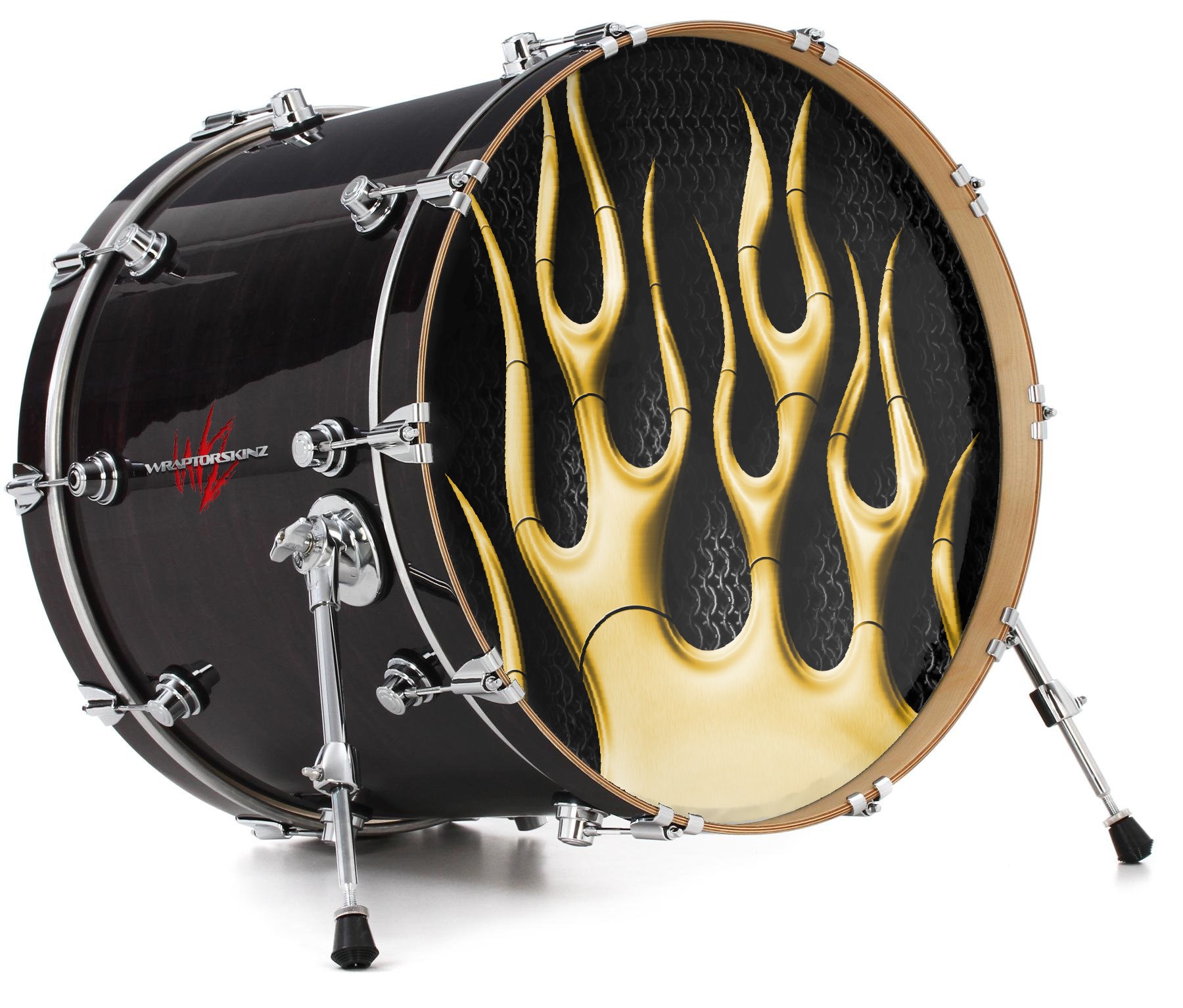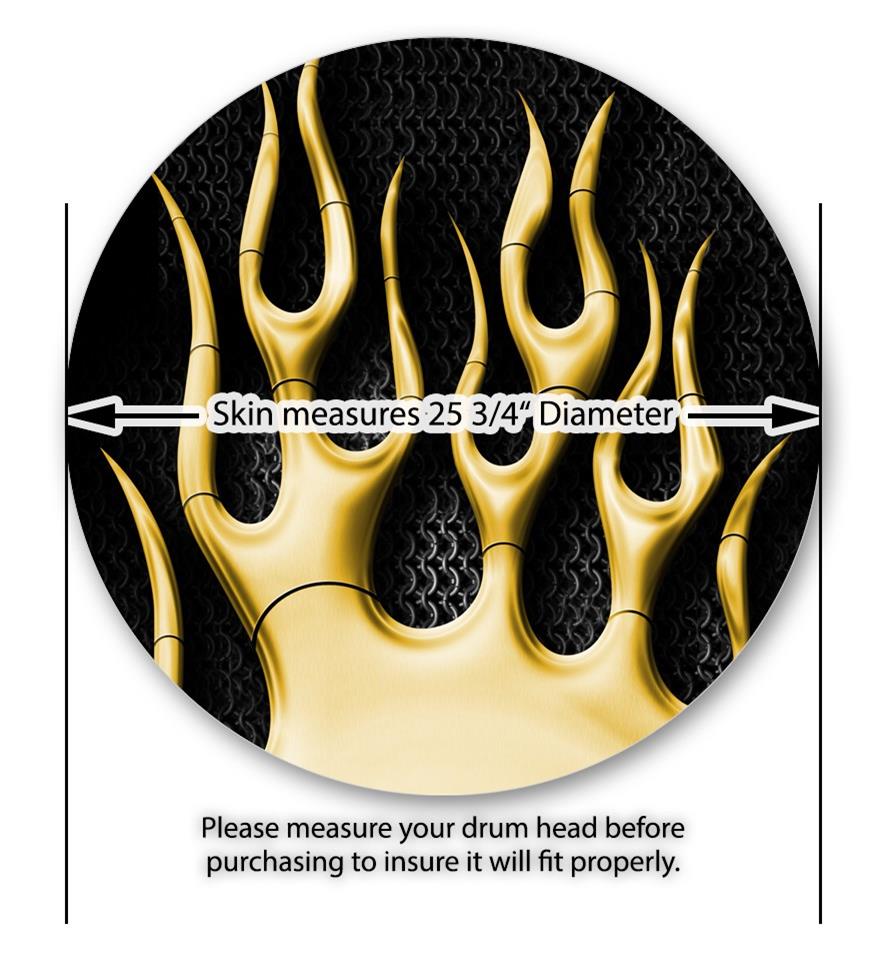 Decal Skin works with most 26" Bass Kick Drum Heads Metal Flames Yellow - DRUM HEAD NOT INCLUDED