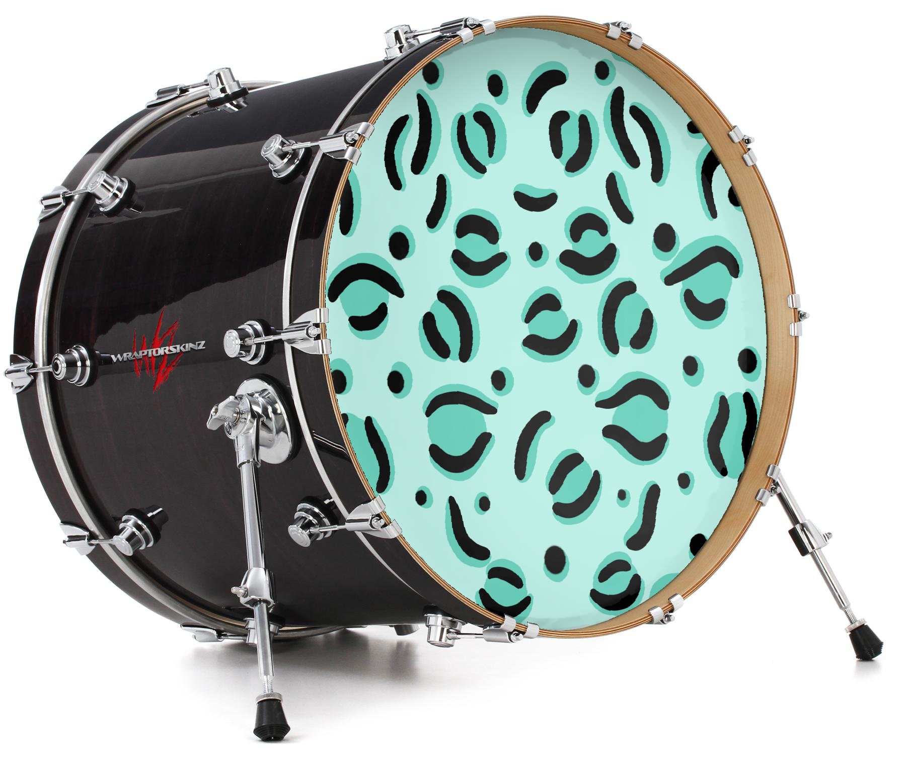 Decal Skin works with most 26" Bass Kick Drum Heads Teal Cheetah - DRUM HEAD NOT INCLUDED