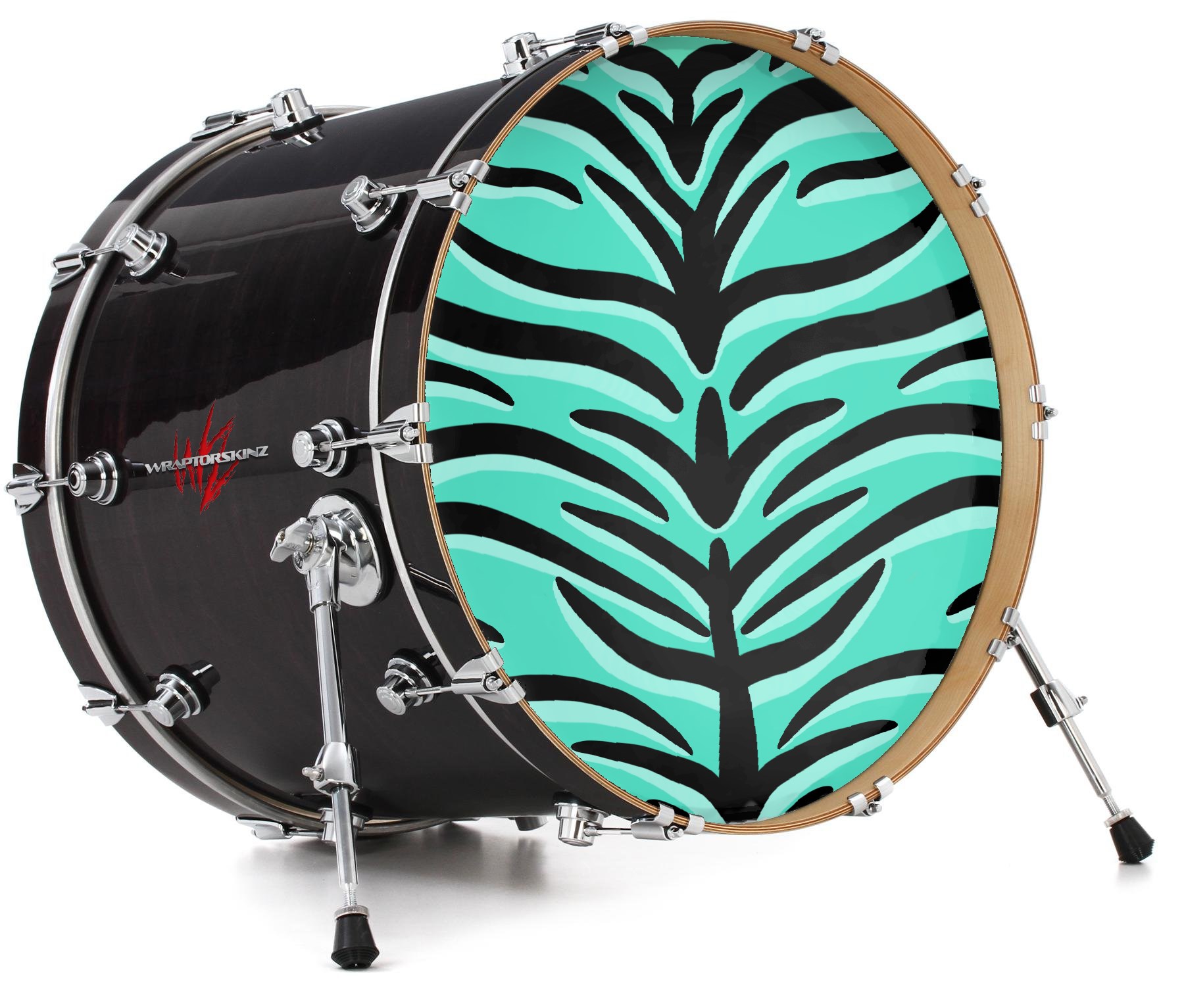 Decal Skin works with most 26" Bass Kick Drum Heads Teal Tiger - DRUM HEAD NOT INCLUDED