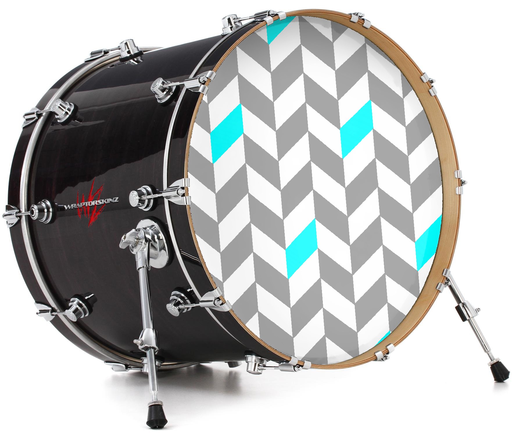 Decal Skin works with most 26" Bass Kick Drum Heads Chevrons Gray And Aqua - DRUM HEAD NOT INCLUDED