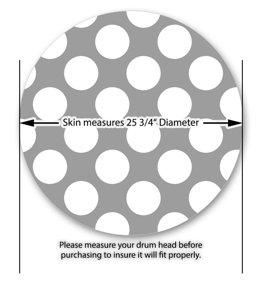 Decal Skin works with most 26" Bass Kick Drum Heads Kearas Polka Dots Whtie On Gray - DRUM HEAD NOT INCLUDED