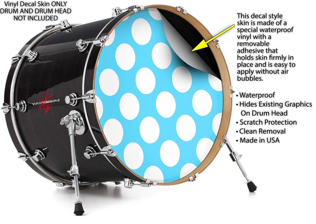 Decal Skin works with most 26" Bass Kick Drum Heads Kearas Polka Dots White And Blue - DRUM HEAD NOT INCLUDED
