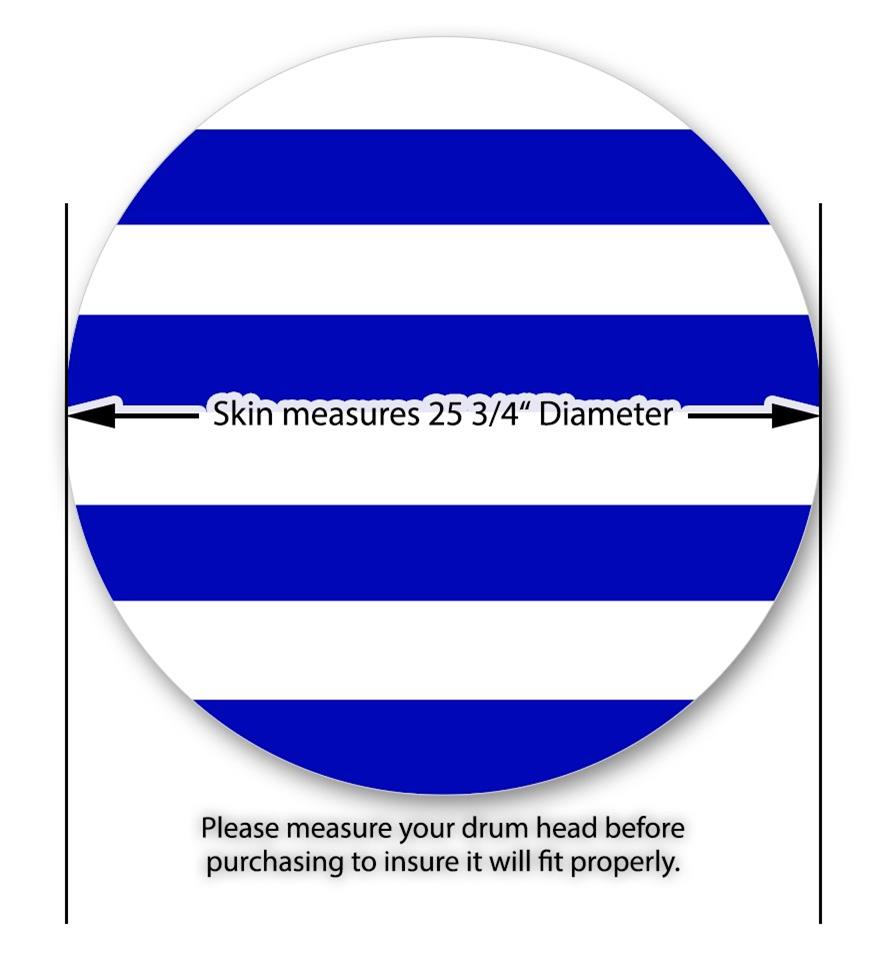 Decal Skin works with most 26" Bass Kick Drum Heads Psycho Stripes Blue and White - DRUM HEAD NOT INCLUDED