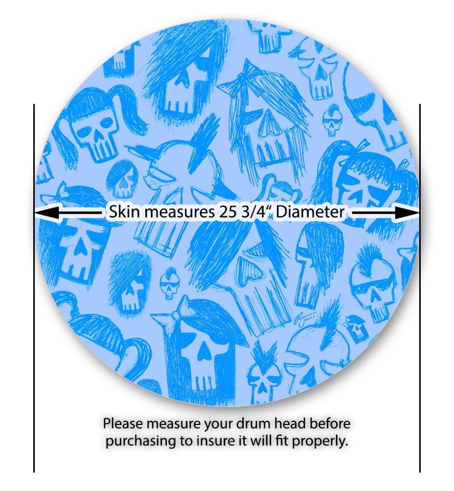 Decal Skin works with most 26" Bass Kick Drum Heads Skull Sketches Blue - DRUM HEAD NOT INCLUDED
