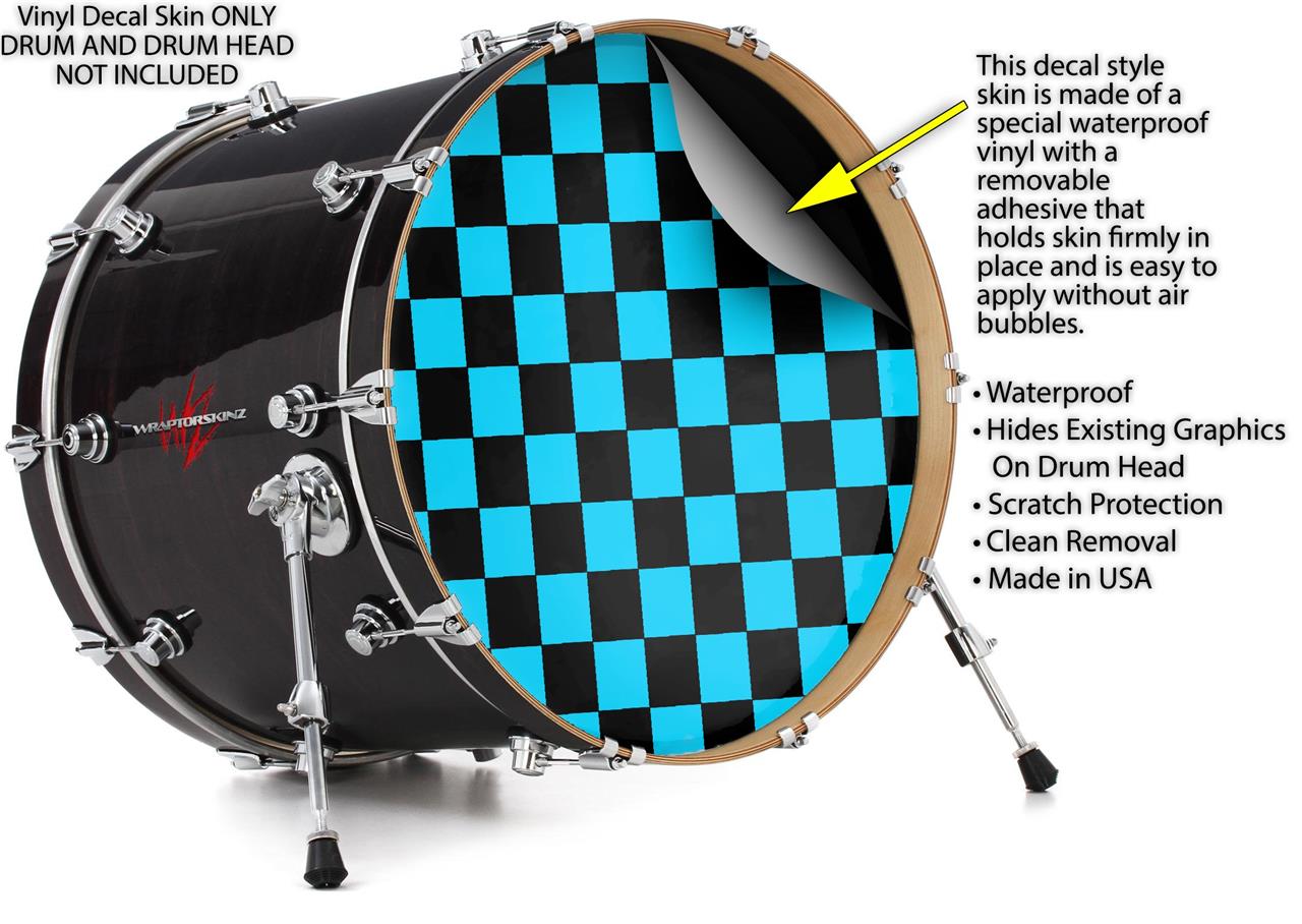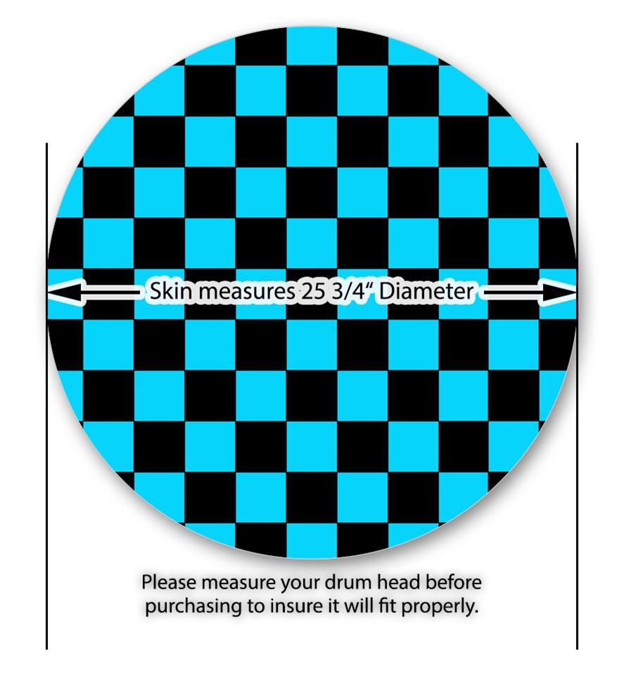 Decal Skin works with most 26" Bass Kick Drum Heads Checkers Blue - DRUM HEAD NOT INCLUDED