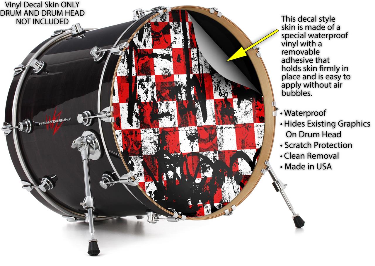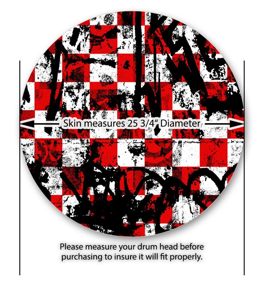 Decal Skin works with most 26" Bass Kick Drum Heads Checker Graffiti - DRUM HEAD NOT INCLUDED