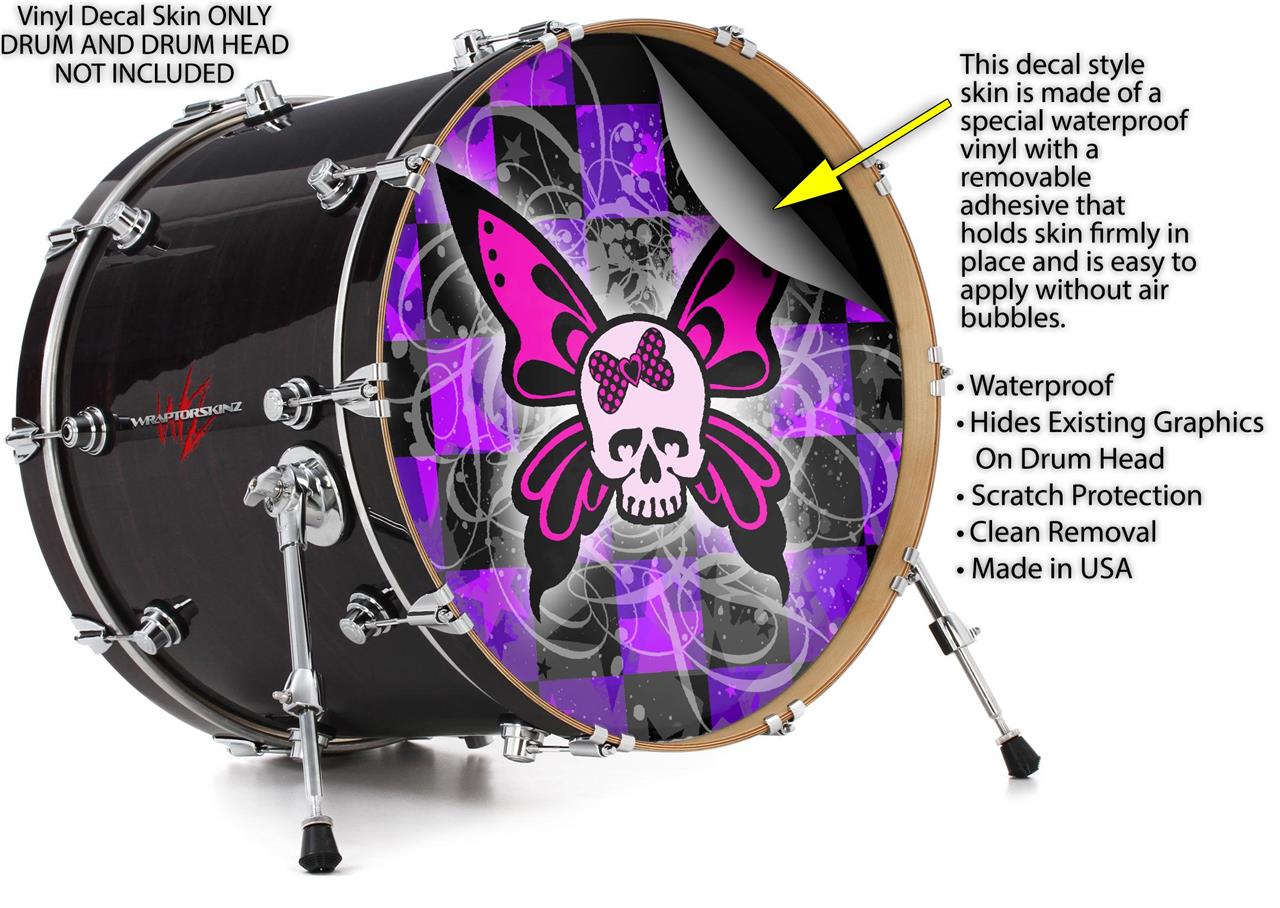 Decal Skin works with most 26" Bass Kick Drum Heads Butterfly Skull - DRUM HEAD NOT INCLUDED