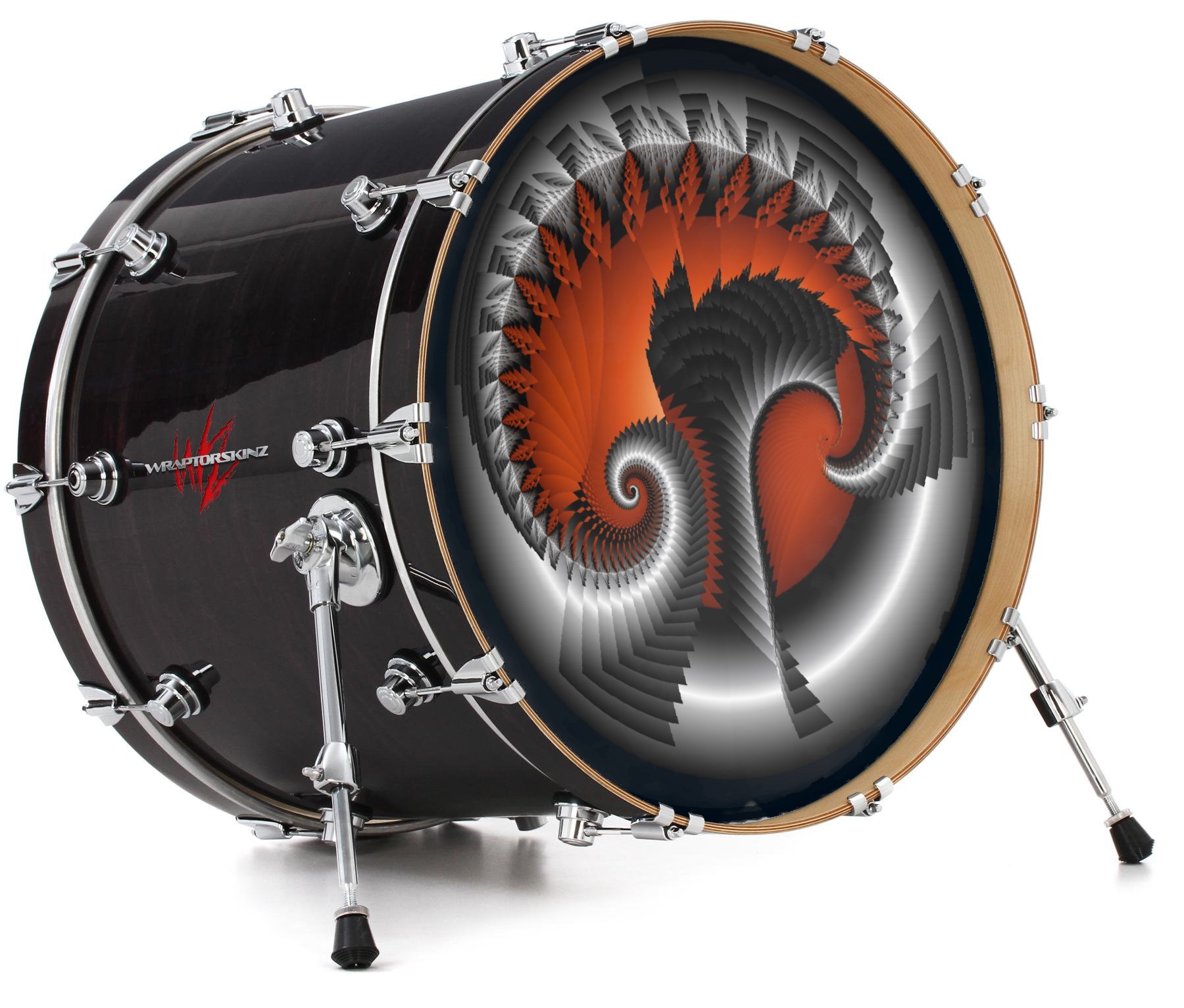 This design also available in other sizes. WraptorSkinz® skin wraps compatible with most kick drum heads. Printed using superb photo quality designs and vibrant colors printed with special fade resistant inks that last even in direct sun for years. WraptorSkinz are a composite three layer commercial grade materials vinyl. The bottom layer is a air release, grey block out removable adhesive that hides existing graphics on the drum head and is easily applied without air bubbles. The middle layer is a flexible vinyl printed with UV protected, fade resistant inks that deliver superb photo quality designs in vibrant colors. Finally, we bond a professional grade laminate over the entire skin adding a glossy protective finish.
