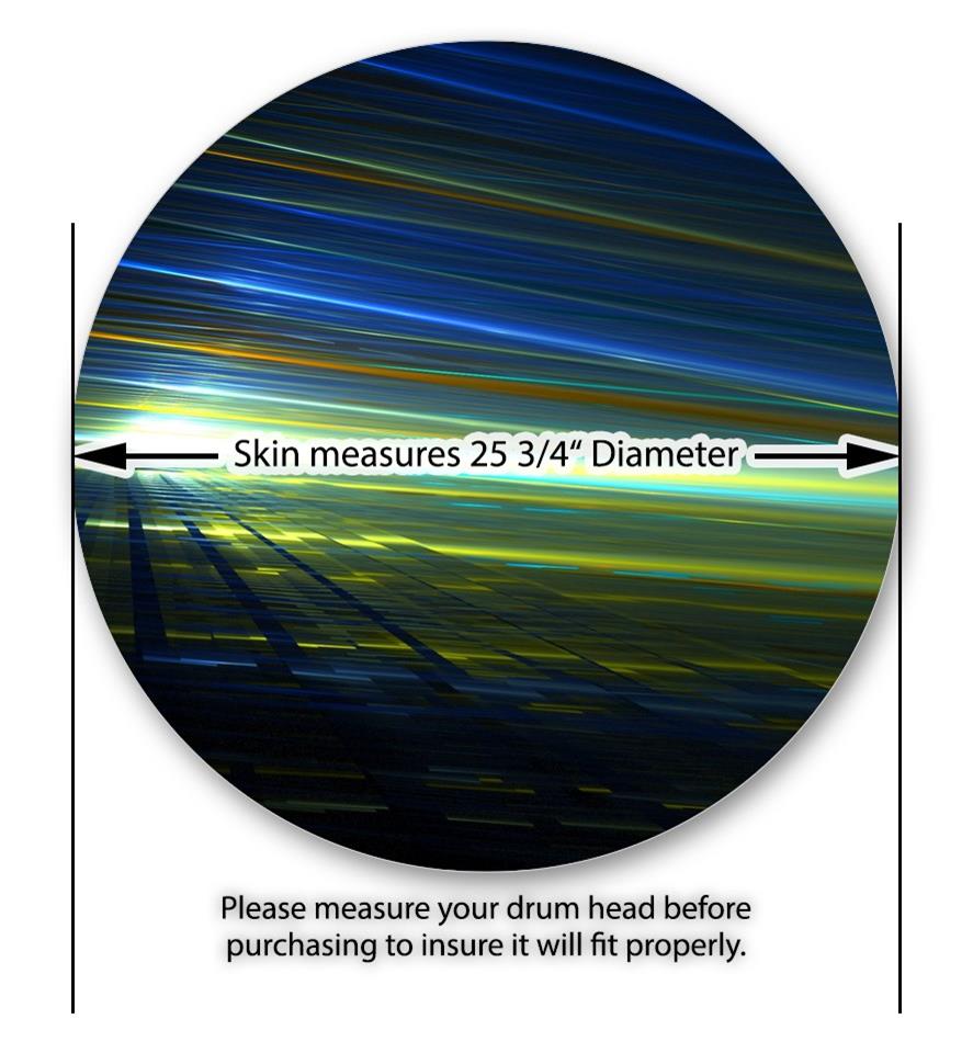 This design also available in other sizes. WraptorSkinz® skin wraps compatible with most kick drum heads. Printed using superb photo quality designs and vibrant colors printed with special fade resistant inks that last even in direct sun for years. WraptorSkinz are a composite three layer commercial grade materials vinyl. The bottom layer is a air release, grey block out removable adhesive that hides existing graphics on the drum head and is easily applied without air bubbles. The middle layer is a flexible vinyl printed with UV protected, fade resistant inks that deliver superb photo quality designs in vibrant colors. Finally, we bond a professional grade laminate over the entire skin adding a glossy protective finish.