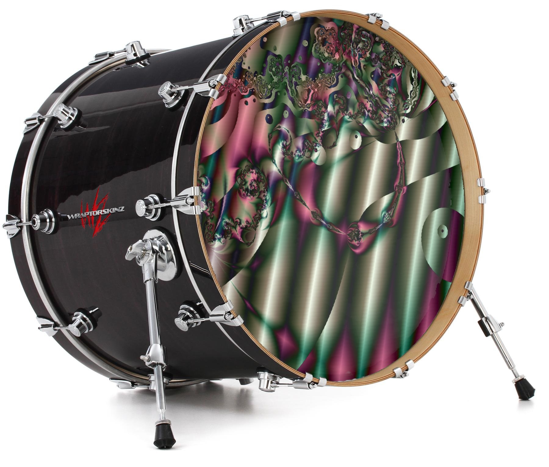 This design also available in other sizes. WraptorSkinz® skin wraps compatible with most kick drum heads. Printed using superb photo quality designs and vibrant colors printed with special fade resistant inks that last even in direct sun for years. WraptorSkinz are a composite three layer commercial grade materials vinyl. The bottom layer is a air release, grey block out removable adhesive that hides existing graphics on the drum head and is easily applied without air bubbles. The middle layer is a flexible vinyl printed with UV protected, fade resistant inks that deliver superb photo quality designs in vibrant colors. Finally, we bond a professional grade laminate over the entire skin adding a glossy protective finish.