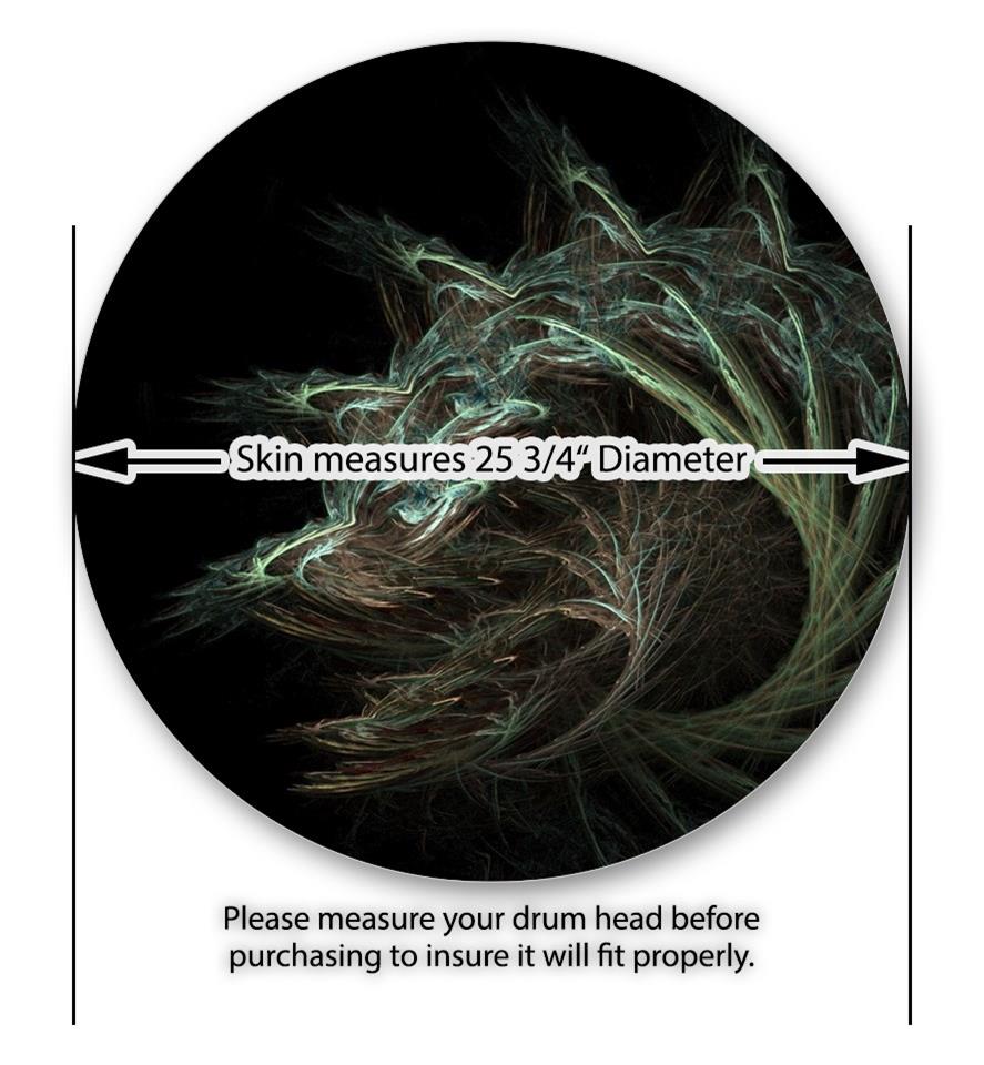 This design also available in other sizes. WraptorSkinz® skin wraps compatible with most kick drum heads. Printed using superb photo quality designs and vibrant colors printed with special fade resistant inks that last even in direct sun for years. WraptorSkinz are a composite three layer commercial grade materials vinyl. The bottom layer is a air release, grey block out removable adhesive that hides existing graphics on the drum head and is easily applied without air bubbles. The middle layer is a flexible vinyl printed with UV protected, fade resistant inks that deliver superb photo quality designs in vibrant colors. Finally, we bond a professional grade laminate over the entire skin adding a glossy protective finish.
