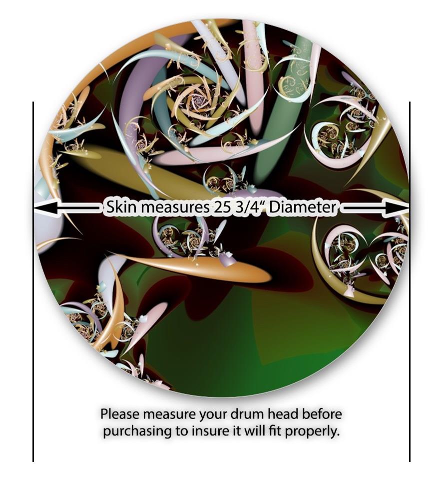 Decal Skin works with most 26" Bass Kick Drum Heads Dimensions - DRUM HEAD NOT INCLUDED