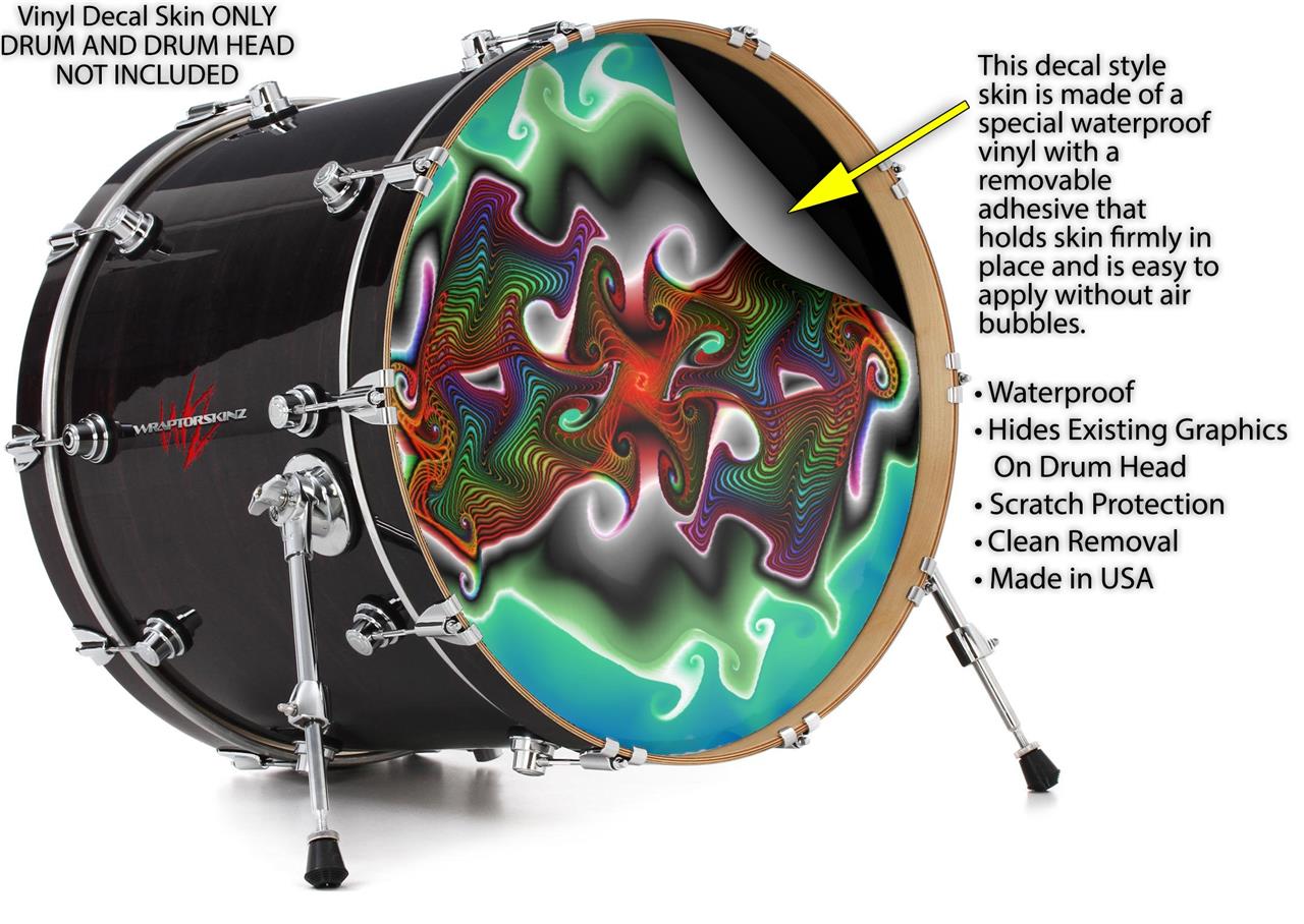 This design also available in other sizes. WraptorSkinz® skin wraps compatible with most kick drum heads. Printed using superb photo quality designs and vibrant colors printed with special fade resistant inks that last even in direct sun for years. WraptorSkinz are a composite three layer commercial grade materials vinyl. The bottom layer is a air release, grey block out removable adhesive that hides existing graphics on the drum head and is easily applied without air bubbles. The middle layer is a flexible vinyl printed with UV protected, fade resistant inks that deliver superb photo quality designs in vibrant colors. Finally, we bond a professional grade laminate over the entire skin adding a glossy protective finish.