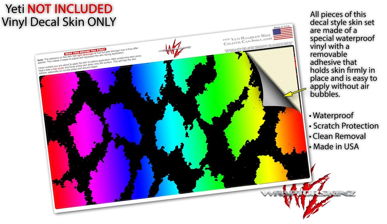 WraptorSkinz Skin Decal Wrap compatible with Yeti 16oz Tall Colster Can Cooler Insulator Rainbow Leopard (COOLER NOT INCLUDED)