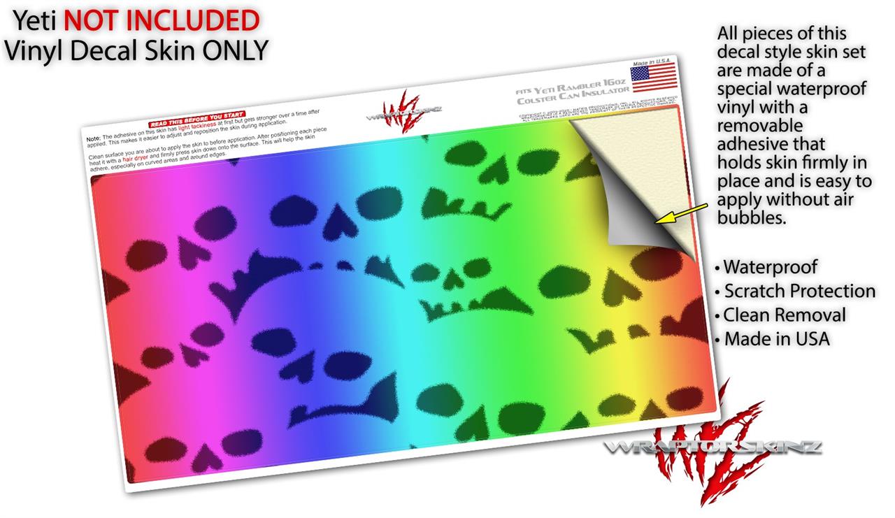 WraptorSkinz Skin Decal Wrap compatible with Yeti 16oz Tall Colster Can Cooler Insulator Rainbow Skull Collection (COOLER NOT INCLUDED)