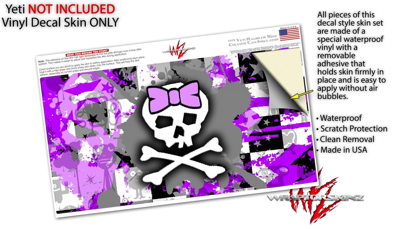 WraptorSkinz Skin Decal Wrap compatible with Yeti 16oz Tall Colster Can Cooler Insulator Purple Princess Skull (COOLER NOT INCLUDED)