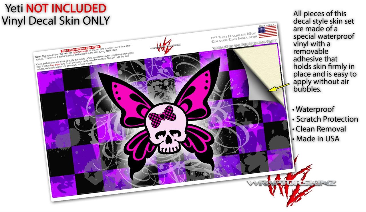 WraptorSkinz Skin Decal Wrap compatible with Yeti 16oz Tall Colster Can Cooler Insulator Butterfly Skull (COOLER NOT INCLUDED)