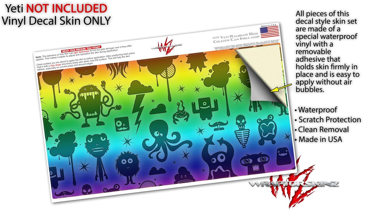 WraptorSkinz Skin Decal Wrap compatible with Yeti 16oz Tall Colster Can Cooler Insulator Cute Rainbow Monsters (COOLER NOT INCLUDED)