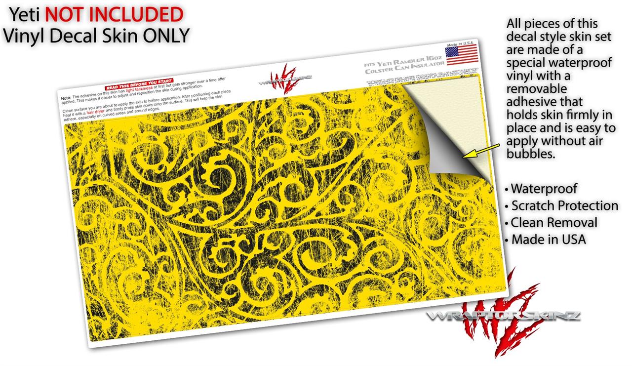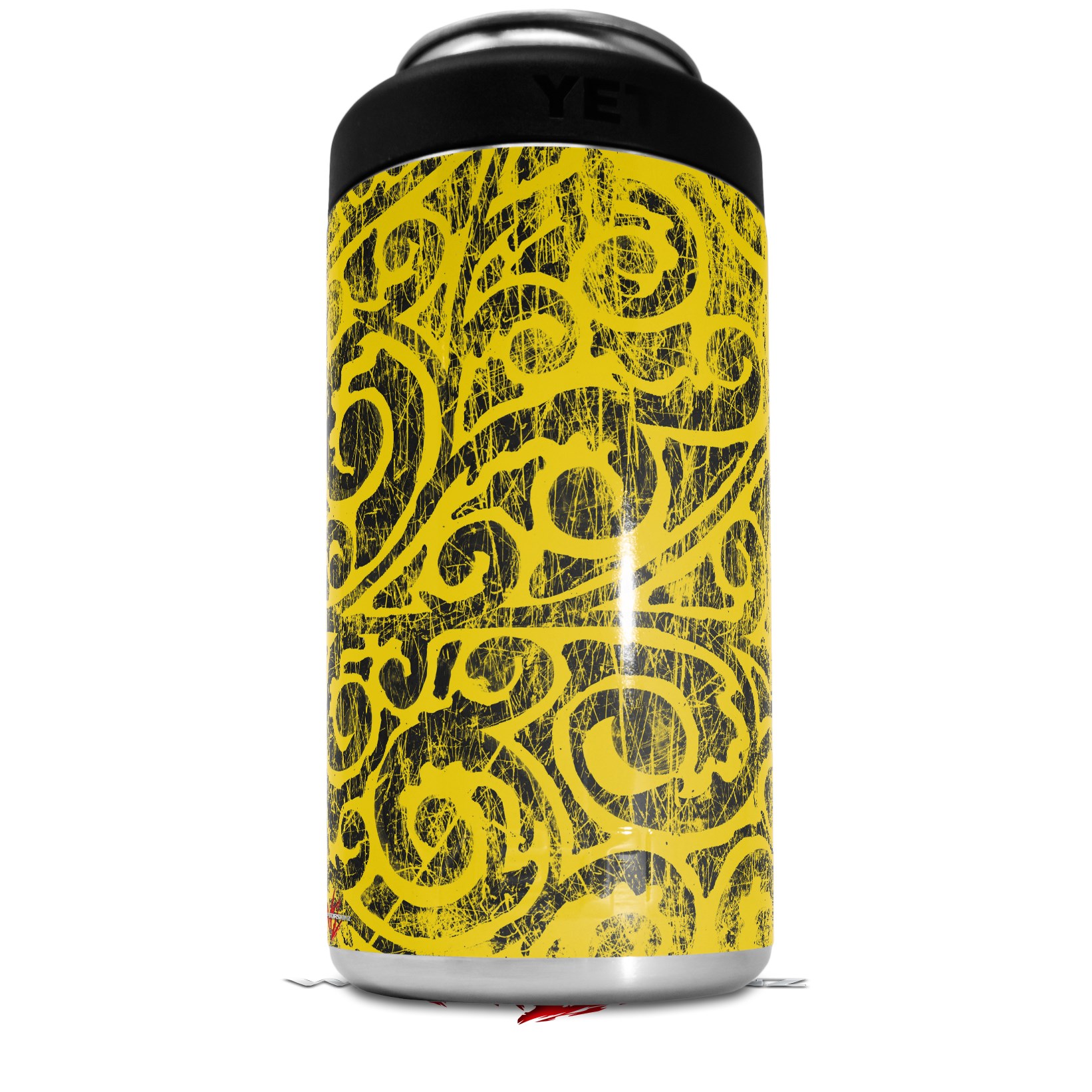 WraptorSkinz Skin Decal Wrap compatible with Yeti 16oz Tall Colster Can Cooler Insulator Folder Doodles Yellow (COOLER NOT INCLUDED)